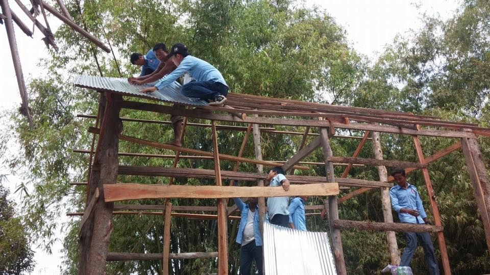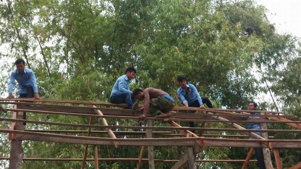 ស.ស.យ.ក. ស្រុកអង្គរបូរី ខេត្តតាកែវ ចំនួន១៤នាក់ ស្រី០២នាក់ បាននាំយកនូវស័ង្កសីចំនួន ១៥សន្លឹក ដើម្បីជួយសាងសង់ផ្ទះមួយខ្នង