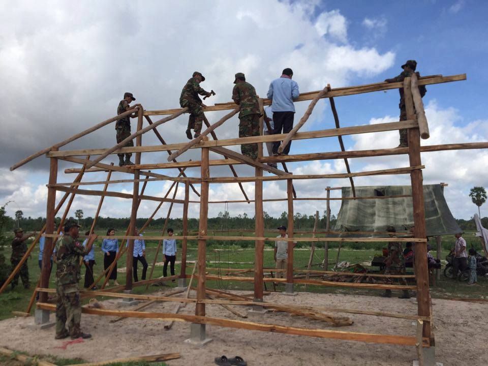 ស.ស.យ.ក. ស្រុកទ្រាំង ខេត្តតាកែវ ដឹកនាំដោយលោក អ៊ុំ ចំរើន អភិបាលរងស្រុក បាននាំយកស័ង្កសីចំនួន៣០សន្លឹក ដែលជាអំណោយរបស់ លោក សុខ ពុទ្ធិវុធ ប្រធានសហភាពសហព័ន្ធយុវជនកម្ពុជា ខេត្តតាកែវ ដើម្បីជួយជួសជុលផ្ទះ០១ខ្នង ជូនគ្រួសារមន្ត្រីយោធា
