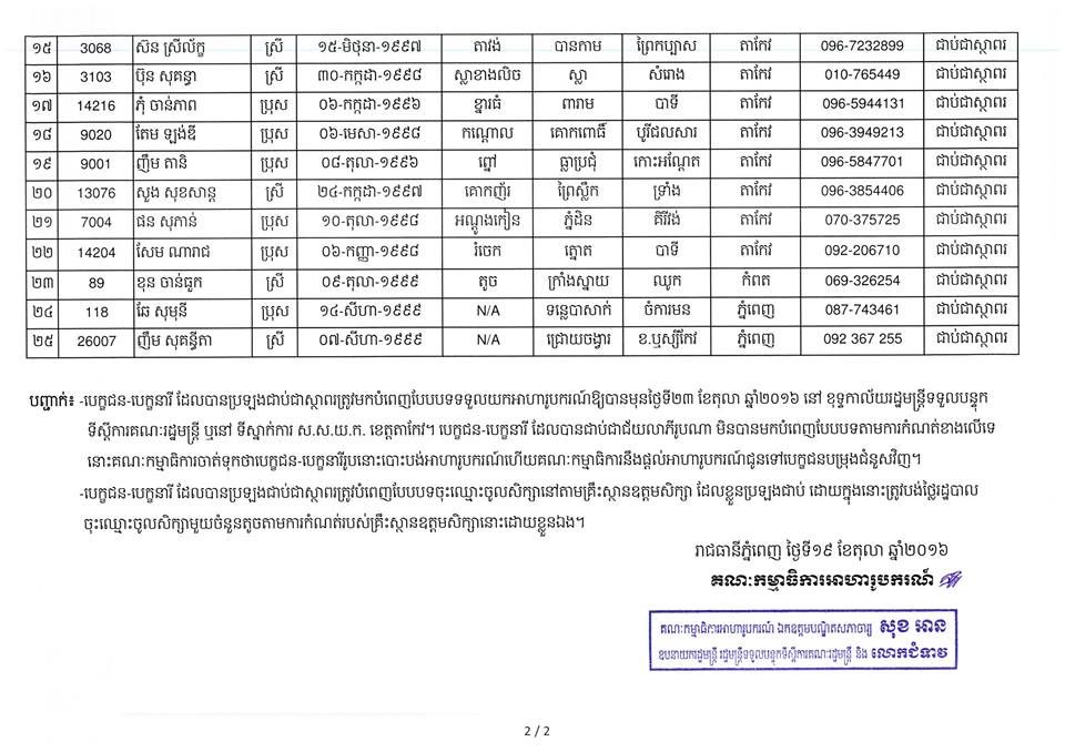 លទ្ធផលនៃការប្រឡងអាហារូបករណ៍ ឯកឧត្តមបណ្ឌិតសភាចារ្យ សុខ អាន និងលោកជំទាវ ឆ្នាំសិក្សា ២០១៦-២០១៧ នៅសាកលវិទ្យាល័យ ភូមិន្ទនីតិសាស្ត្រ និងវិទ្យាសាស្ត្រសេដ្ឋកិច្ច