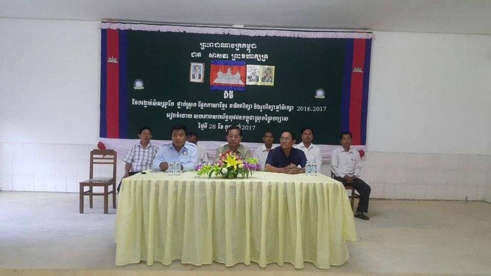 សហភាពសហព័ន្ធយុវជនកម្ពុជា ស្រុកព្រៃកប្បាស ខេត្តតាកែវ បានរៀបចំពិធីជូនរង្វាន់សិស្សពូកែថ្នាក់ស្រុក ផ្នែកអក្សរសិល្បិ៍ខ្មែរ គណិតវិទ្យា និងរូបវិទ្យា ថ្នាក់ទី៩ និងទី១២ ឆ្នាំសិក្សា ២០១៦-២០១៧ នៅស្នាក់ការ ស.ស.យ.ក. ស្រុកព្រៃកប្បាស ខេត្តតាកែវ ក្រោមអធិបតីភាពលោក អ៊ិត សារ អភិបាលនៃគណៈអភិបាលស្រុកព្រៃកប្បាស លោក ទ្រី មករា អនុប្រធានការិយាល័យអប់រំ យុវជន និងកីឡាស្រុកព្រៃកប្បាស និងជាប្រធានផ្នែកកិច្ចការផ្ទៃក្នុង នៃលេខាធិការដ្ឋាន សហភាពសហព័ន្ធយុវជនកម្ពុជា ខេត្តតាកែវ លោក ស្រ៊ាង វណ្ណា ប្រធានកម្រងមធ្យមសិក្សាស្រុកព្រៃកប្បាស ដោយមានការចូលរួមពីសំណាក់លោកនាយកសាលាមធ្យមសិក្សាទូទាំងស្រុកព្រៃកប្បាស អាណាព្យាបាលសិស្ស និងប្អូនៗសិស្សានុសិស្សជាប់ជ័យលាភីពីលេខ១ ដល់លេខ១២ សរុបប្រមាណ ១៥៥នាក់។