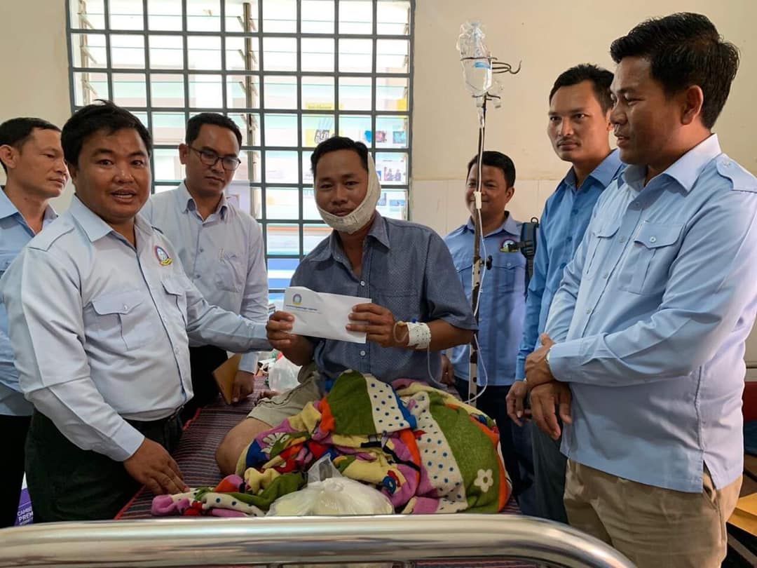 សមាជិក សមាជិកា សហភាពសហព័ន្ធយុវជនកម្ពុជា ខេត្តតាកែវ ដឹកនាំដោយ លោក ទ្រី មករា សមាជិកគណៈកម្មាធិការ ស.ស.យ.ក. ខេត្តតាកែវ បានអញ្ជេីញចុះសួរសុខទុក្ខ និងនាំយកថវិកាមួយចំនួនជូនលោក សុខ សារឿន សមាជិក ស.ស.យ.ក. ស្រុកសំរោង ដែលកំពុងសម្រាកព្យាបាលជំងឺនៅមន្ទីរពេទ្យបង្អែកខេត្តតាកែវ ។