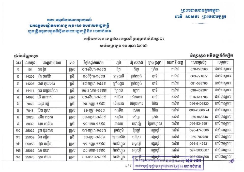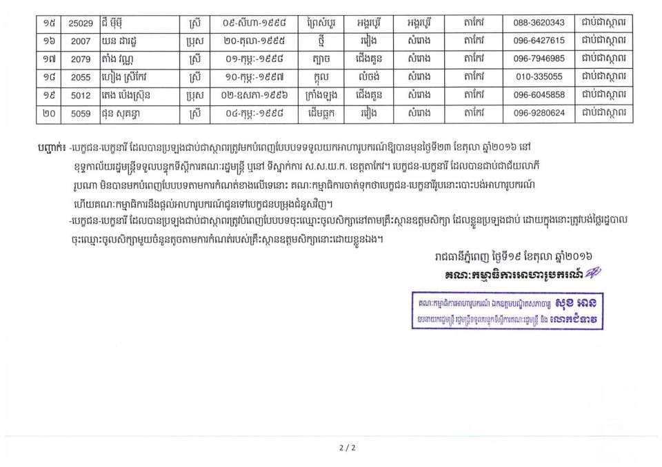 លទ្ធផលនៃការប្រឡងអាហារូបករណ៍ ឯកឧត្តមបណ្ឌិតសភាចារ្យ សុខ អាន ឧបនាយករដ្ឋមន្ត្រី រដ្ឋមន្ត្រីទទួលបន្ទុកទីស្តីការគណៈរដ្ឋមន្ត្រី និងលោកជំទាវ ឆ្នាំសិក្សា ២០១៦-២០១៧ នៅវិទ្យាស្ថាន អភិវឌ្ឍន៍និស្សិត។