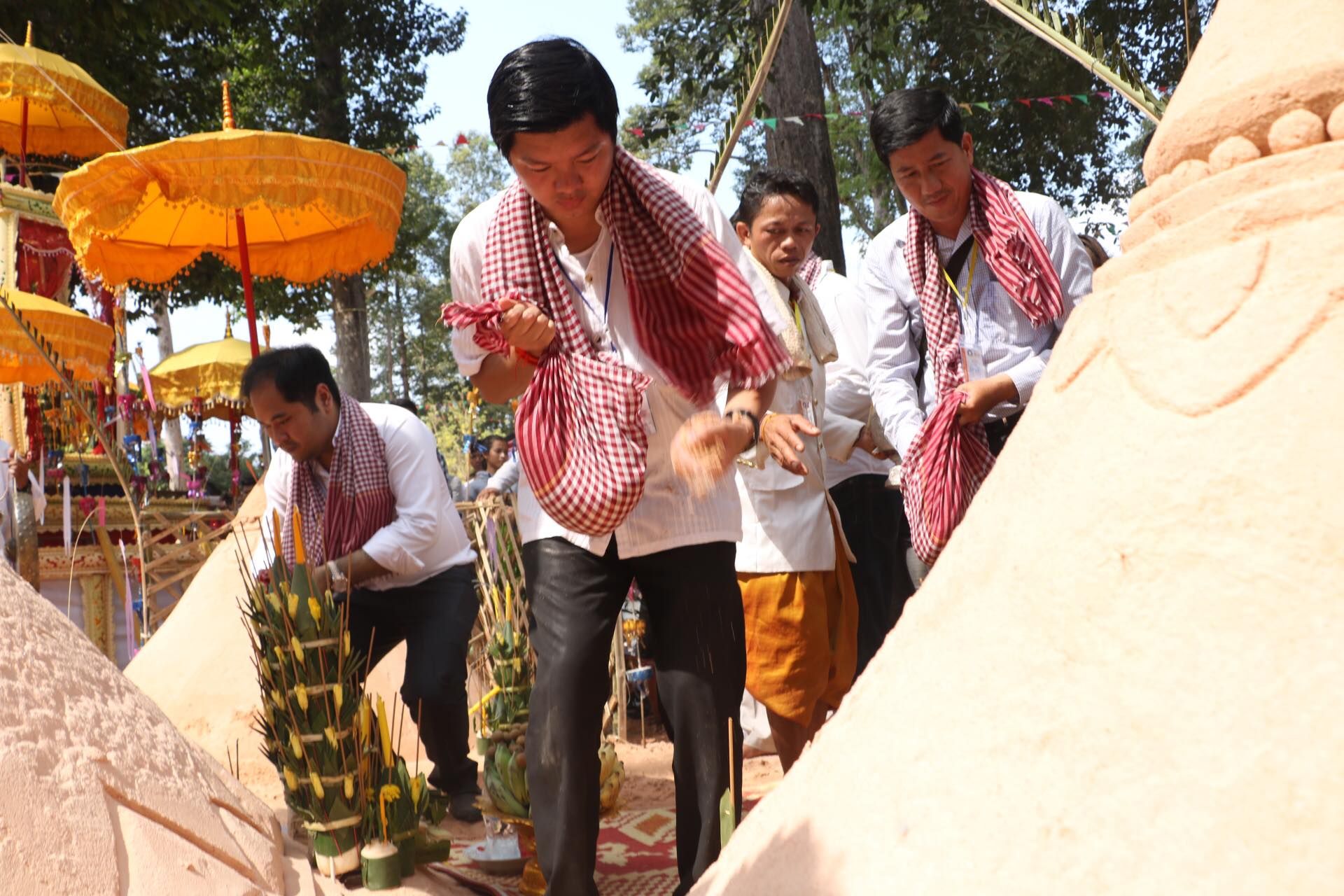 ក្រុមការងារកម្មវិធីភូមិខ្ញ៊ំ បានចូលរួមក្នុងពិធីពូនភ្នំខ្សាច់ និងលេីកទង់សាសនា ក្រោមអធិបតីភាព ឯកឧត្ដម ហ៊ុន ម៉ានី