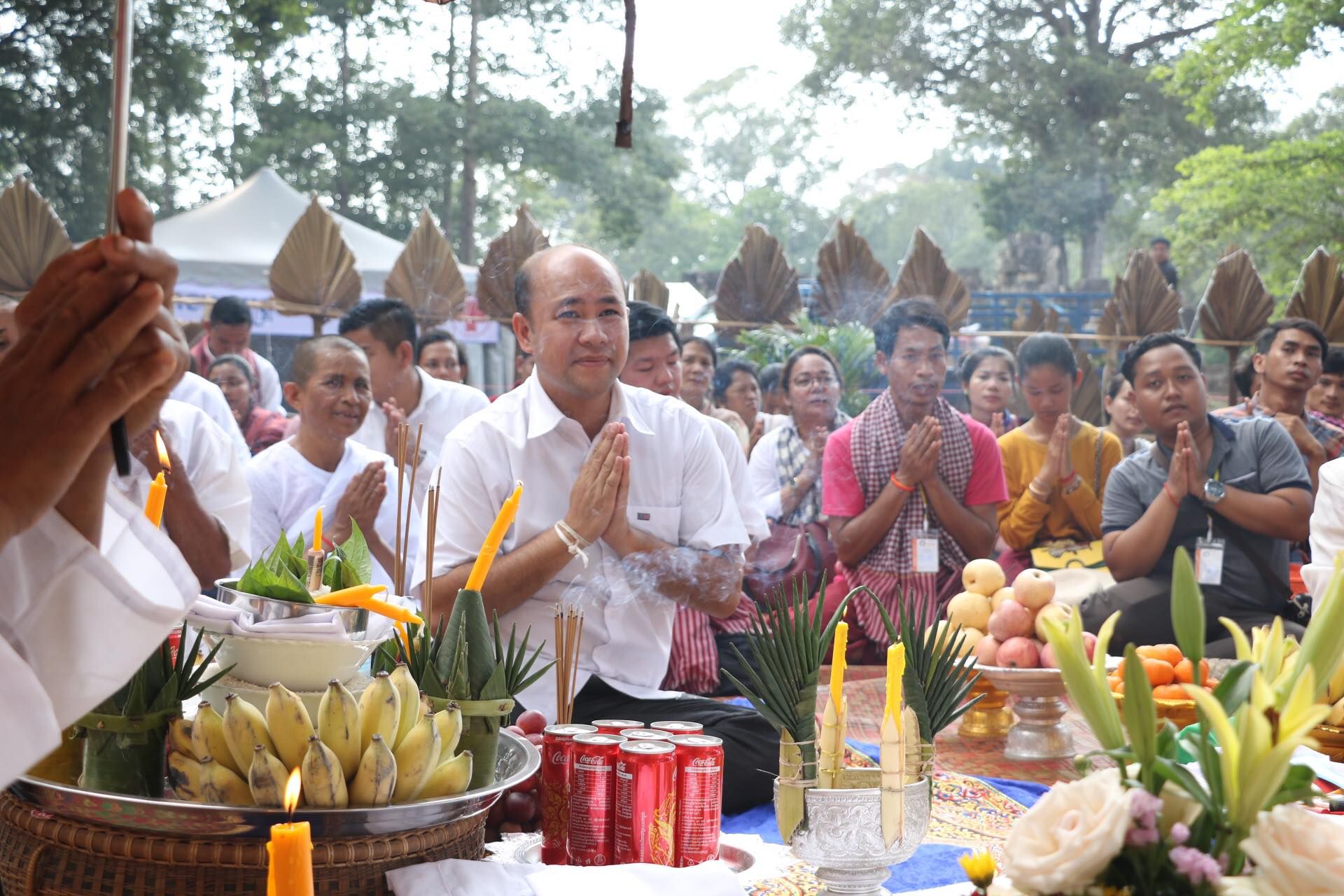 ក្រុមការងារកម្មវិធីភូមិខ្ញ៊ំ បានចូលរួមក្នុងពិធីពូនភ្នំខ្សាច់ និងលេីកទង់សាសនា ក្រោមអធិបតីភាព ឯកឧត្ដម ហ៊ុន ម៉ានី ប្រធានសហភាពសហព័ន្ធយុវជនកម្ពុជា និងឯកឧត្ដម សុខ សង្វារ អគ្គនាយករងអាជ្ញាធរជាតិអប្សរា និងជាប្រធានក្រុមការងារកម្មវិធីភូមិខ្ញ៊ំ នៃព្រឹត្តិការណ៍អង្គរសង្ក្រាន្តឆ្នាំ២០១៨ ក្នុងឱកាសចូលឆ្នាំថ្មី ប្រពៃណីខ្មែរ ឆ្នាំច សំរឹទ្ធិស័ក ព.ស.២៥៦២ នៅក្នុងភូមិខ្ញ៊ំ មុខប្រាសាទបាយ័ន ។
