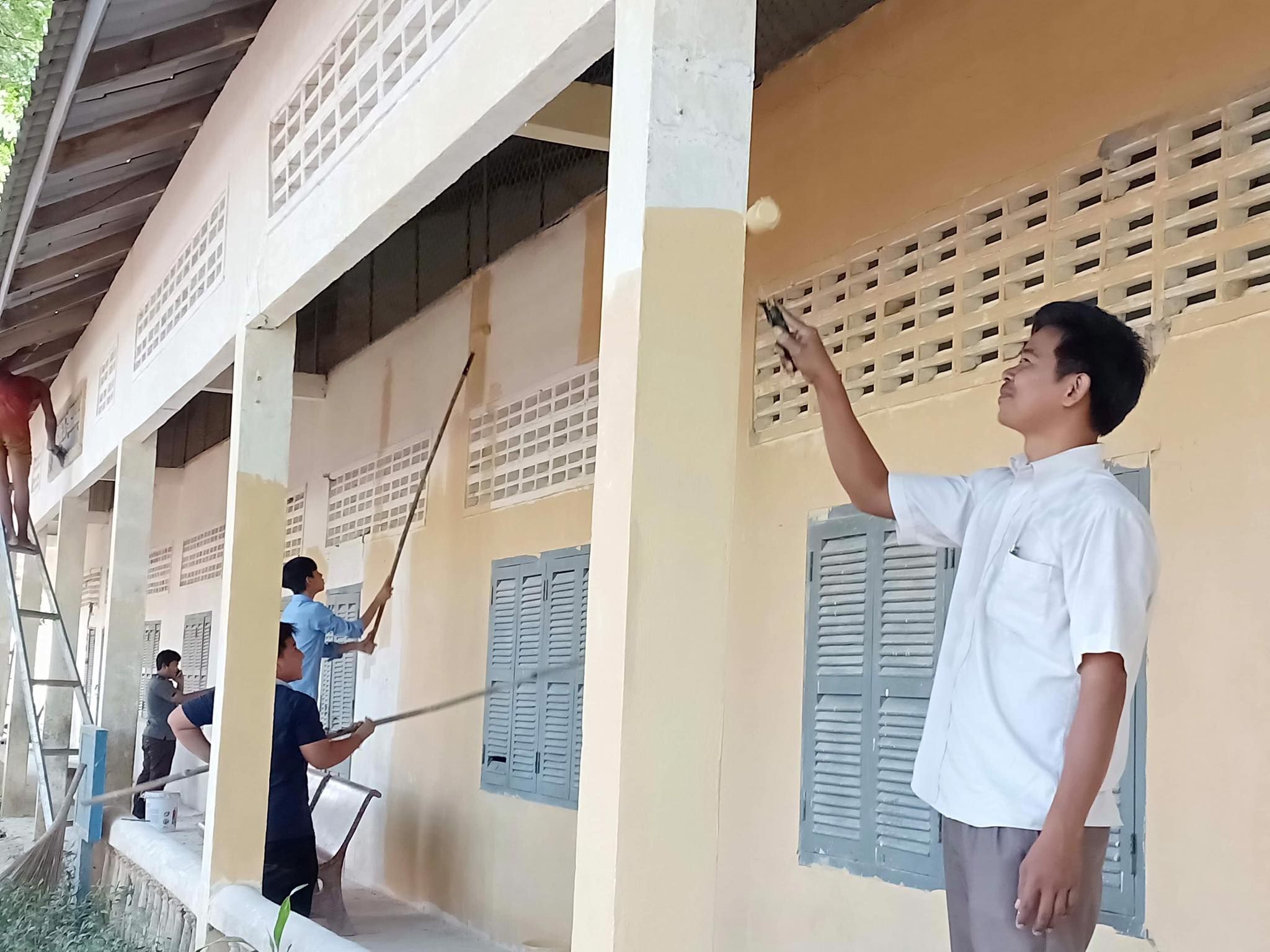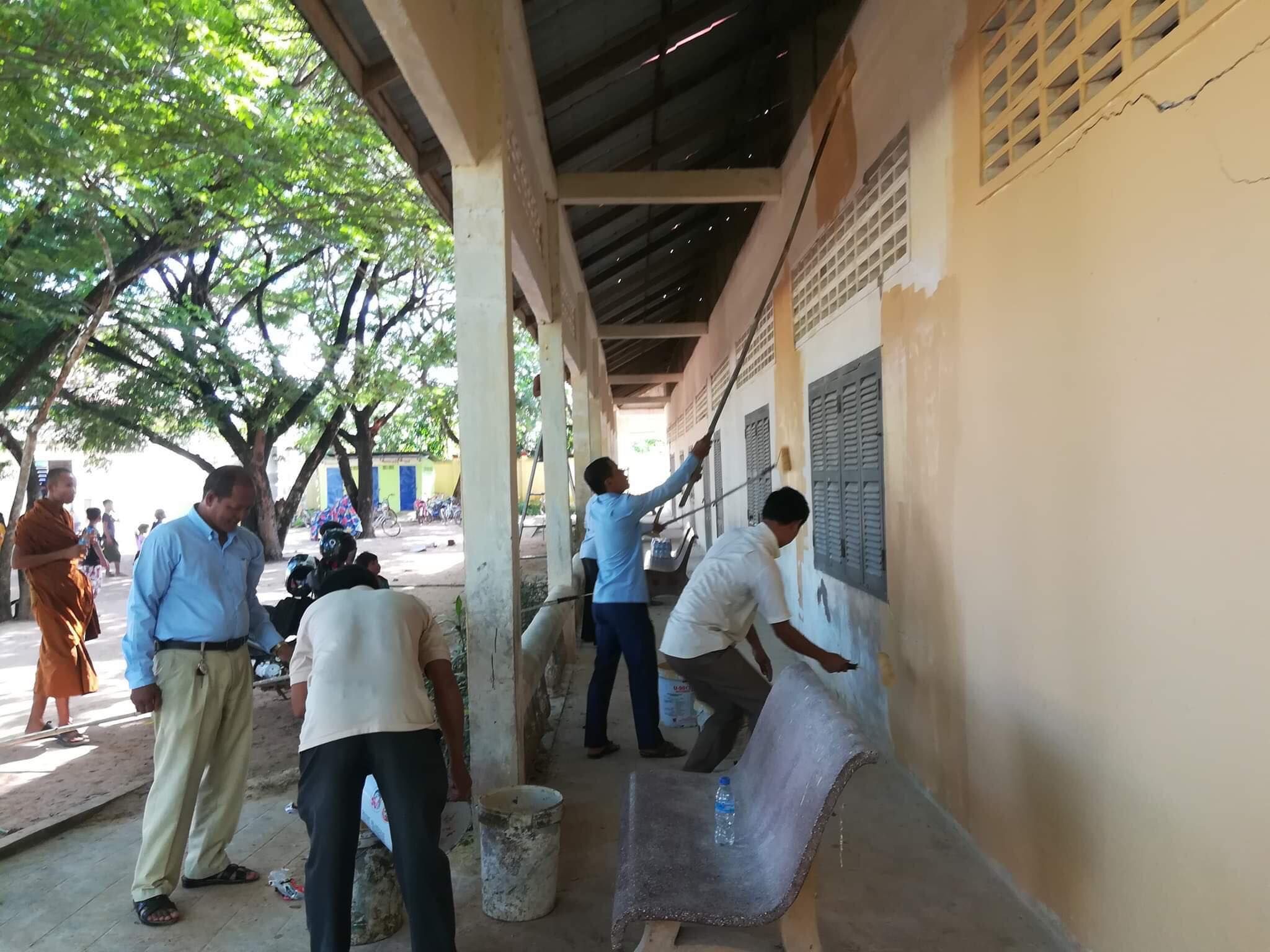 គណៈកម្មាធិការ ស.ស.យ.ក. ស្រុកព្រៃកប្បាស បាននាំយកថវិកាចំនួន 100,000រៀល ដែលជាអំណោយរបស់ឯកឧត្តម សុខ ពុទ្ធិវុធ ប្រធាន ស.ស.យ.ក. ខេត្តតាកែវ ទៅប្រគេនព្រះគ្រូចៅអធិការ វត្តតេជោសិទ្ធារាមបានហ្លួង ដើម្បីទិញថ្នាំសម្រាប់លាបអគារសិក្សាបឋមសិក្សាបានហ្លួង ។ ក្នុងឱកាសនោះ សមាជិក ស.ស.យ.ក. ស្រុកព្រៃកប្បាស ក៏បានជួយលាបថ្នាំអគារសិក្សា ជាមួយព្រះសង្ឃ លោកគ្រូ អ្នកគ្រូ និងប្រជាពលរដ្ឋ ផងដែរ ។