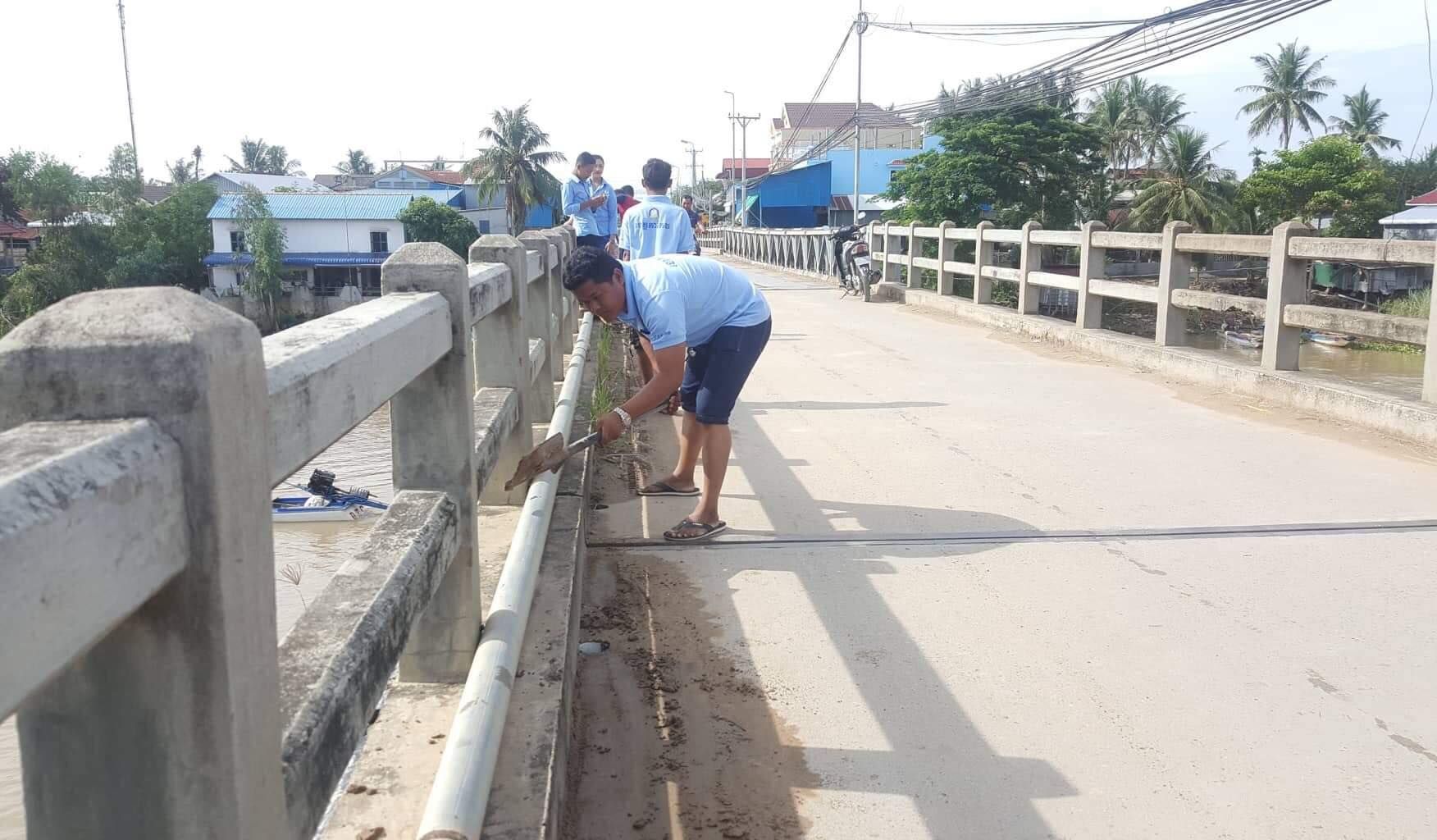 សហភាពសហព័ន្ធយុវជនកម្ពុជា ស្រុកអង្គរបូរី បានចូលរួមជាមួយ កំលាំងនគរបាលនៃអធិការដ្ឋាននគរបាលស្រុកអង្គរបូរី បានចុះជួយលាងសម្អាតស្ពានអង្គរបូរី