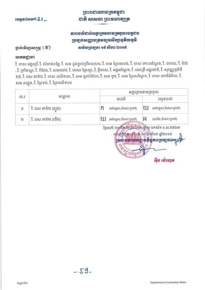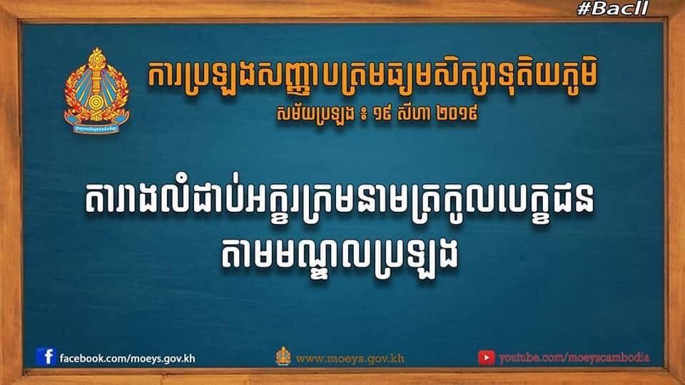 តារាងលំដាប់អក្ខរក្រមនាមត្រកូលបេក្ខជនប្រឡងសញ្ញាបត្រមធ្យមសិក្សាទុតិយភូមិ សម័យប្រឡង ៖ ១៩ សីហា ២០១៩