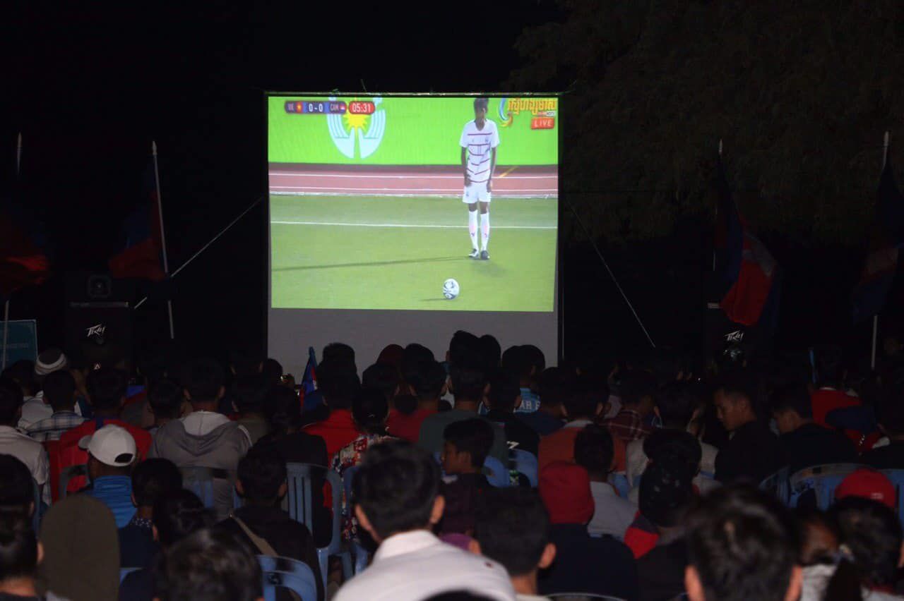 ទិដ្ឋភាពបងប្អូនអ្នកគាំទ្រវិស័យកីឡាបាល់ទាត់កម្ពុជាចូលរួមទស្សនា​ និងគាំទ្រដល់ក្រុមកីឡាបាល់ទាត់ជម្រេីសជាតិកម្ពុជាអាយុក្រោម២២ឆ្នាំ​