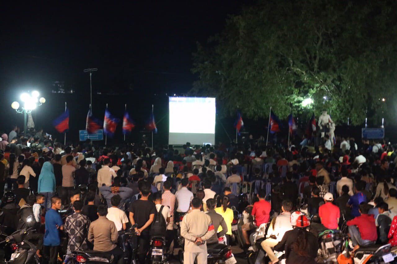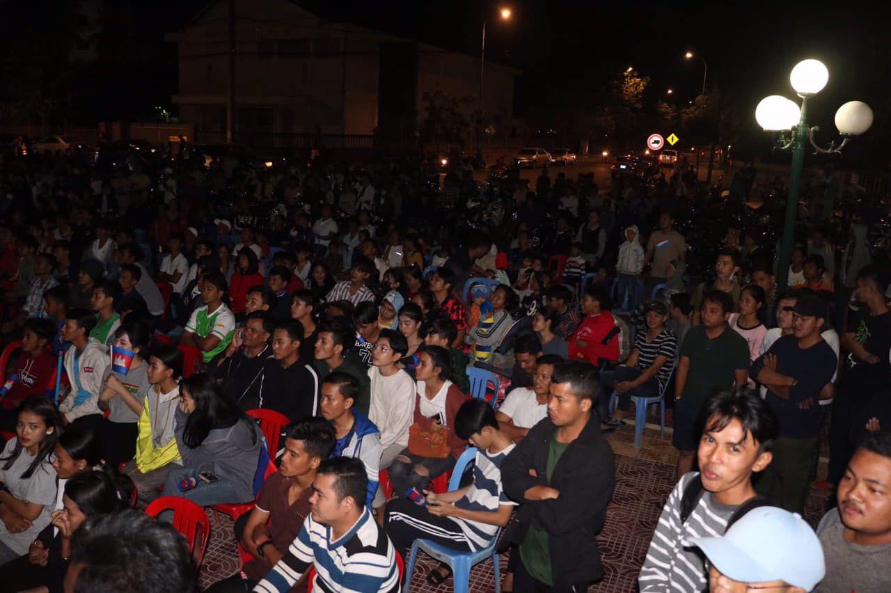 ទិដ្ឋភាពបងប្អូនអ្នកគាំទ្រវិស័យកីឡាបាល់ទាត់កម្ពុជាចូលរួមទស្សនា​ និងគាំទ្រដល់ក្រុមកីឡាបាល់ទាត់ជម្រេីសជាតិកម្ពុជាអាយុក្រោម២២ឆ្នាំ​ នៅបរិវេណសួនច្បារមាត់បឹងតាកែវយ៉ាងច្រេីនកុះករ។