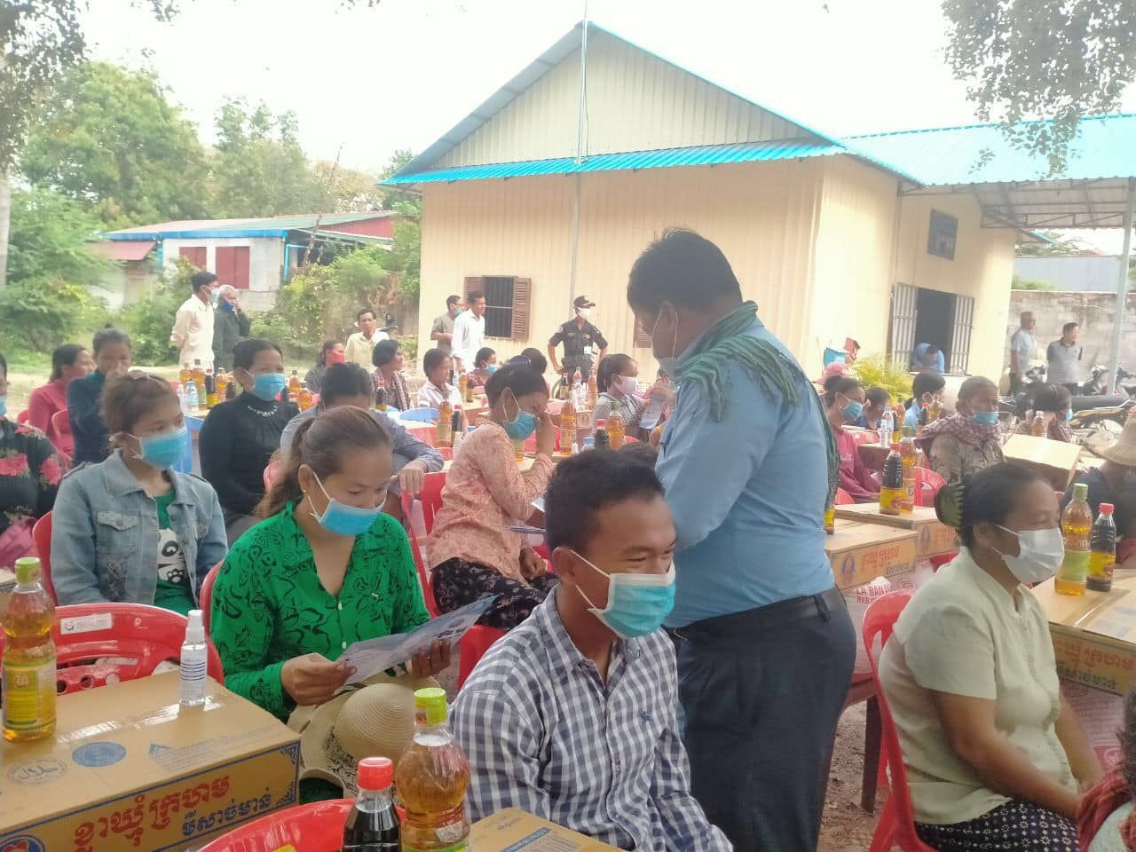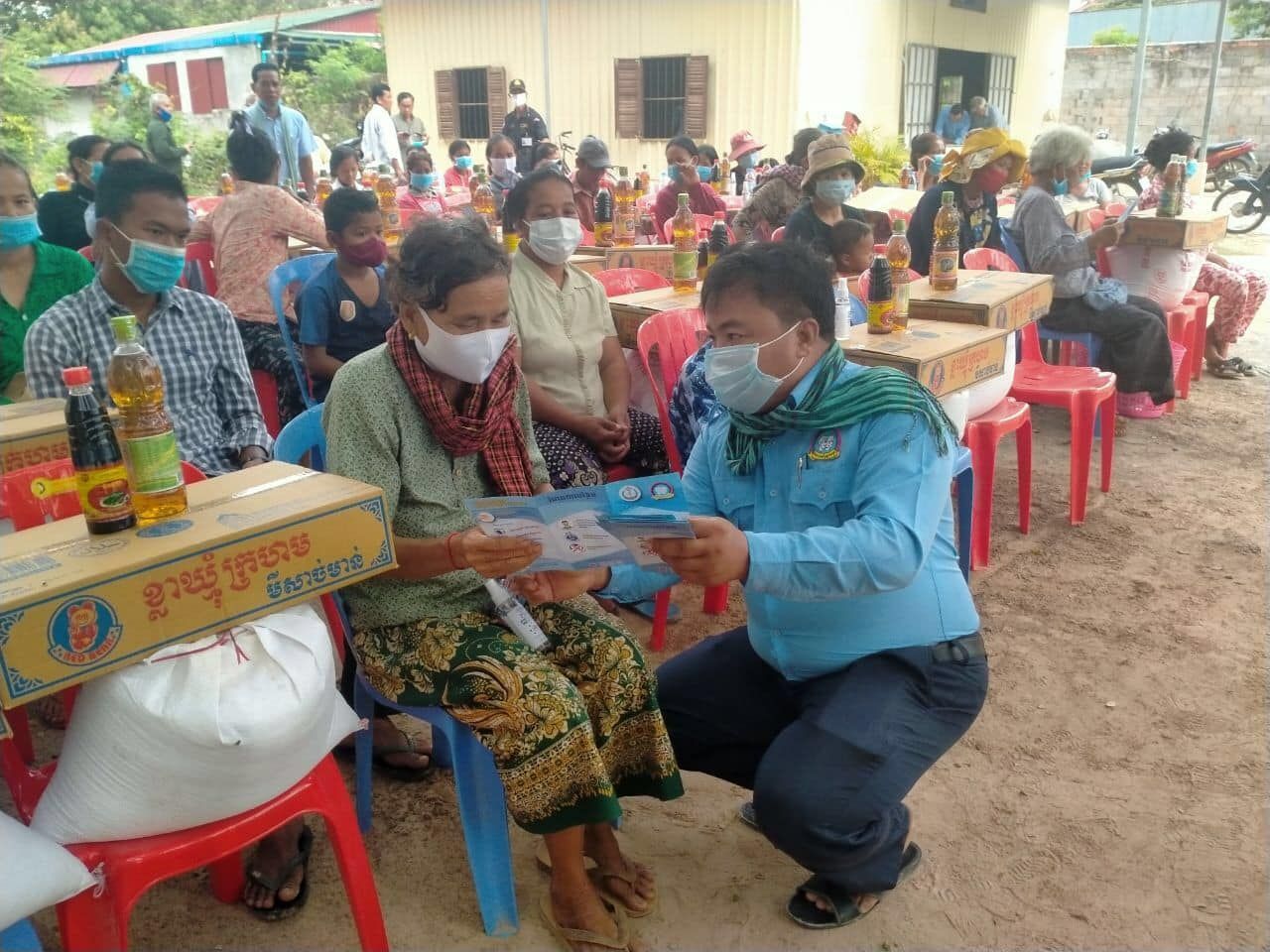 ការចែកជូនស្បៀងអាហារដល់ប្រជាពលរដ្ឋក្រីក្រ ចំនួន៦១គ្រួសារ របស់អាជ្ញាធរស្រុកព្រៃកប្បាស និងយុទ្ធនាការបញ្រ្ជាបការយល់ដឹងពីគ្រោះថ្នាក់នៃជំងឺកូវីដ១៩ ដល់ប្រជាពលរដ្ឋកម្ពុជា នៅខេត្តតាកែវ របស់ ស.ស.យ.ក. ស្រុកព្រៃកប្បាស