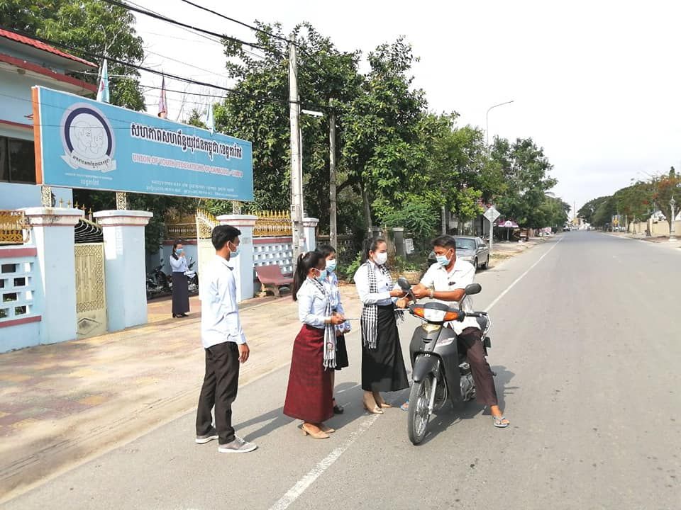 ក្រុមការងារ លេខាធិការដ្ឋាន ស.ស.យ.ក-ខេត្ត និងក្រុងដូនកែវ សរុប ១០នាក់ ស្រី ០៧នាក់ បាន ចងបដាផ្សព្វផ្សាយ ចំនួន ០១ផ្ទាំង ស្តីពីការលាងសម្អាតដៃ រក្សាអនាម័យ រក្សាគម្លាតសង្គម ការពាក់ម៉ាស់ការពារ និងចែកខិត្តប័ណ្ណ ចំនួន ១២២សន្លឹក ដល់ប្រជាពលរដ្ឋ នៅតាមបណ្តោយផ្លូវមុខស្នាក់ការ ស.ស.យ.ក-ខេត្ត នាព្រឹកថ្ងៃទី២៥ ខែមេសា ឆ្នាំ២០២០ ។