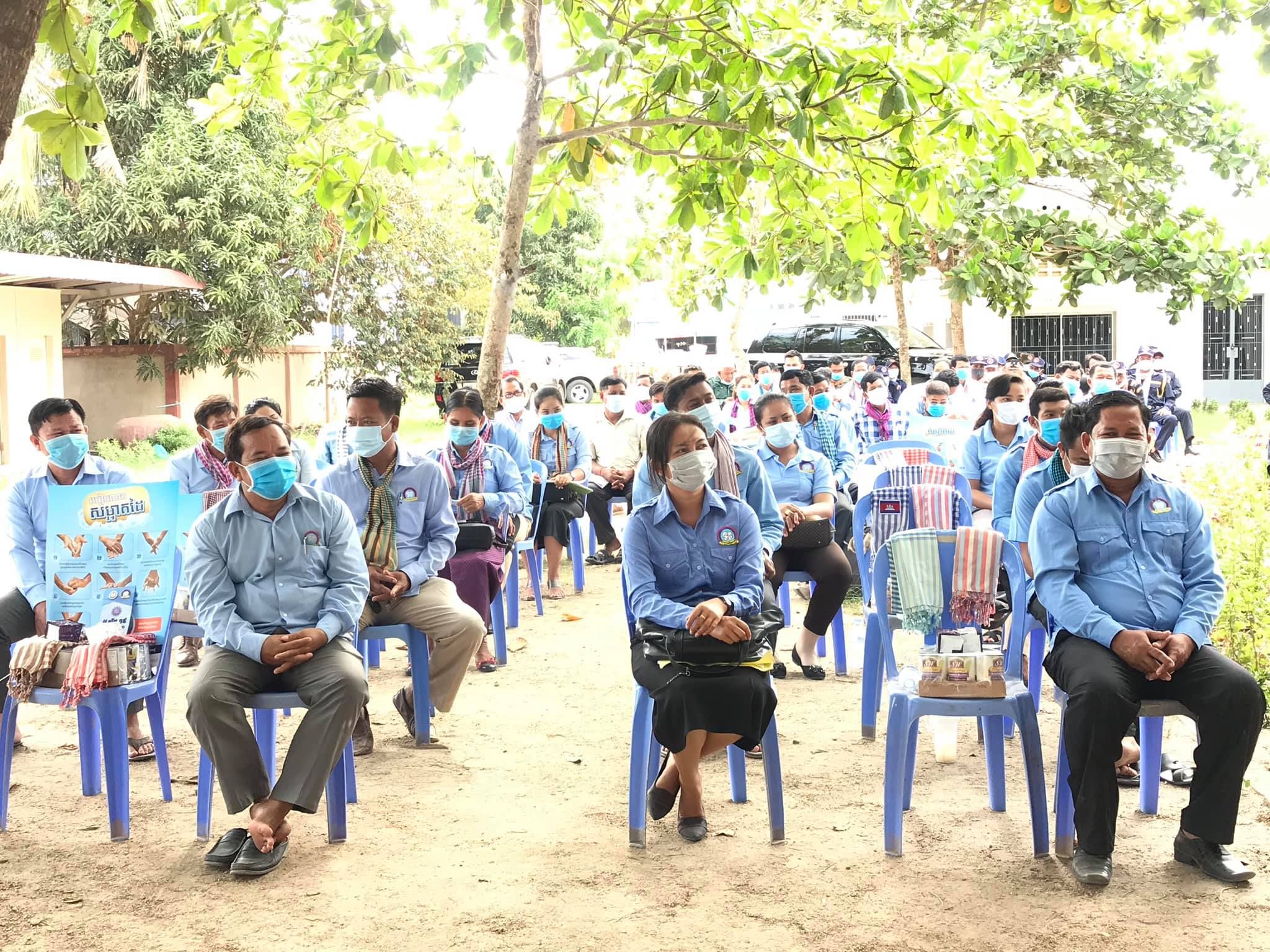 “ ឯកឧត្ដមវេជ្ជបណ្ឌិត សុខ ផេង និង ឯកឧត្ដម សុខ ពុទ្ធិវុធ អញ្ជើញថ្លែងអំណរគុណដល់យុវជន ស.ស.យ.ក. ស្រុកទ្រាំង និងប្រជាការពារភូមិទូទាំងស្រុកទ្រាំង ខេត្តតាកែវ ដែលបានចូលរួមយ៉ាងសកម្មក្នុងយុទ្ធនាការបញ្រ្ជាបការយល់ដឹងស្ដីពីគ្រោះថ្នាក់នៃជំងឺកូវីដ១៩ ជូនដល់ប្រជាជនកម្ពុជា នៅទូទាំងស្រុកទ្រាំង “ សមាជិក សមាជិកា ស.ស.យ.ក. ស្រុកទ្រាំង និងប្រជាការពារភូមិទូទាំងស្រុកទ្រាំង បានចូលរួមយ៉ាងសកម្មក្នុងកិច្ចសហការជាមួយអាជ្ញាធរមូលដ្ឋាន និងមន្រ្តីសុខាភិបាលដើម្បីផ្សព្វផ្សាយពីហានិភ័យនៃជំងឺកូវីដ១៩ និងវិធានការការពារ ទប់ស្កាត់ការរីករាលដាលនៃជំងឺនេះជូនដល់ប្រជាពលរដ្ឋទូទាំងឃុំទាំង១៤ ក្នុងស្រុកទ្រាំង។ ពិធីនេះស្ថិតក្រោមអធិបតីភាព ឯកឧត្តមវេជ្ជបណ្ឌិត សុខ ផេង រដ្ឋលេខាធិការក្រសួងសុខាភិបាល និងជាប្រធានក្រុមការងាររាជរដ្ឋាភិបាលចុះមូលដ្ឋានស្រុកទ្រាំង និង ឯកឧត្តម សុខ ពុទ្ធិវុធ រដ្ឋលេខាធិការក្រសួងប្រៃសណីយ៍និងទូរគមនាគមន៍ និងជាអនុប្រធានក្រុមការងាររាជរដ្ឋាភិបាលចុះមូលដ្ឋានស្រុកទ្រាំង ព្រមទាំងមានការចូលរួមពី ឯកឧត្ដម លោកជំទាវ លោក លោកស្រី អនុប្រធានក្រុមការងាររាជរដ្ឋាភិបាលចុះមូលដ្ឋានស្រុក ឃុំ គណៈអភិបាលស្រុក សមាជិកក្រុមប្រឹក្សាស្រុក ប្រជាការពារភូមិ១៥៣រូប សមាជិក ស.ស.យ.ក. ៥២រូប ផងដែរ។ ស្ថិតក្នុងពិធីនេះ ឯកឧត្ដមគណៈអធិបតីក៏បានជម្រាបជូនបងប្អូនប្រជាការពារភូមិ និងយុវជន ស.ស.យ.ក. ទាំងអស់ផងដែរថាបើទោះបីជាស្ថានភាពជំងឺនៅក្នុងប្រទេសកម្ពុជាមានការព្យាបាលបានជាសះស្បើយជាបន្តបន្ទាប់ក្ដី ក៏ត្រូវបន្តពង្រឹងការប្រុងប្រយ័ត្នខ្ពស់ ថែរក្សាអនាម័យ ជាពិសេសអនុវត្តតាមវិធានការណែនាំនានារបស់ក្រសួងសុខាភិបាលឱ្យបានខ្ជាប់ខ្ជួន និងចូលរួមផ្សព្វផ្សាយឱ្យបានកាន់តែទូលំទូលាយនូវហានិភ័យនៃជំងឺកូវីដ១៩ នេះ ទៅដល់ក្រុមគ្រួសារដើម្បីចូលរួមការពារ ទប់ស្កាត់ កុំឱ្យមានឆ្លងនៅក្នុងសហគមន៍របស់ខ្លួន។ ឆ្លៀតក្នុងឱកាសនេះដែរ ឯកឧត្ដមគណៈអធិបតីក៏បាននាំយកមកនូវសម្ភារមួយចំនួនចែកជូនដល់ សមាជិក ស.ស.យ.ក. និងប្រជាការពារភូមិ ដូចជាអាហារសណ្ដែកកំប៉ុង សាប៊ូលាងដៃ ជែលសម្លាប់មេរោគ ម៉ាស់ និងខិតប័ណ្ណផ្សព្វផ្សាយស្ដីពីវិធានការការពារទប់ស្កាត់ការឆ្លងរីករាលនៃជំងឺកូវីដ១៩ ផងដែរ។