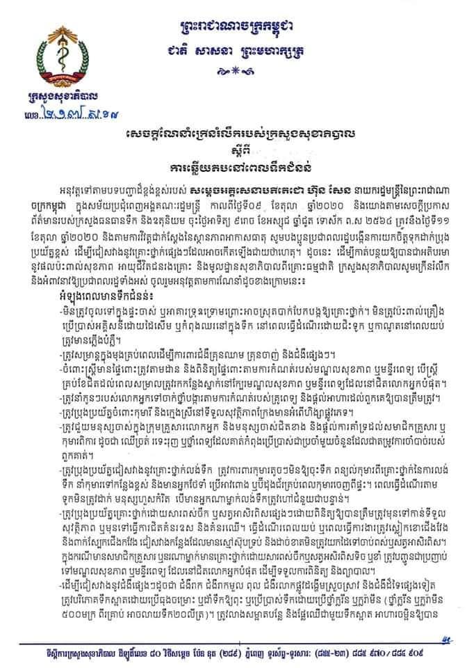 “សេចក្តីណែនាំក្រេីនរំលឹក ស្តីពីការឆ្លេីយតបនៅពេលទឹកជំនន់” ក្រសួងសុខាភិបាលនៃព្រះរាជាណាចក្រកម្ពុជា