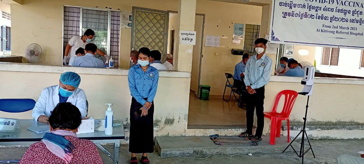 សហភាពសហព័ន្ធយុវជនកម្ពុជា ស្រុកគីរីវង់ នៅតែបន្តចូលរួមយ៉ាងសកម្មក្នុងការសម្របសម្រួលចាក់វ៉ាក់សាំងកូវីដ-១៩ លើកទី២ នៅមន្ទីរពេទ្យបង្អែកស្រុកគីរីវង់