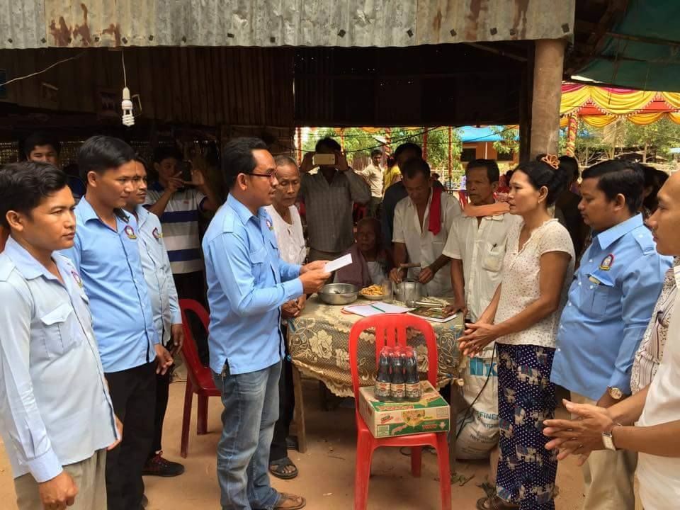 សមាជិក ស.ស.យ.ក ស្រុកសំរោង ខេត្តតាកែវ បានចូលរួមរំលែកទុក្ខដ៏ក្រៀមក្រំនិងនាំយកនូវអំណោយមួយចំនួនរួមមាន៖ មី ០១កេស, ទឹកស៊ីអ៊ីវ ០១យួរ និងថវិកាចំនួន ១០០.០០០៛ (មួយរយពាន់រៀល) ជូនដល់គ្រួសារសព លោក មាន ចន្ថន មេភូមិធ្លកដំណាក់ហ្លួង ឃុំជំរះពេន ស្រុកសំរោង ខេត្តតាកែវ នារសៀលថ្ងៃទី១៥ ខែកក្កដា ឆ្នាំ២០១៥ ដែលលោកបានទទួលមរណភាពដោយ សារគ្រោះថ្នាក់ចរាចរកាលពីថ្ងៃទី១៣ ខែកក្កដា ឆ្នាំ២០១៥ ។