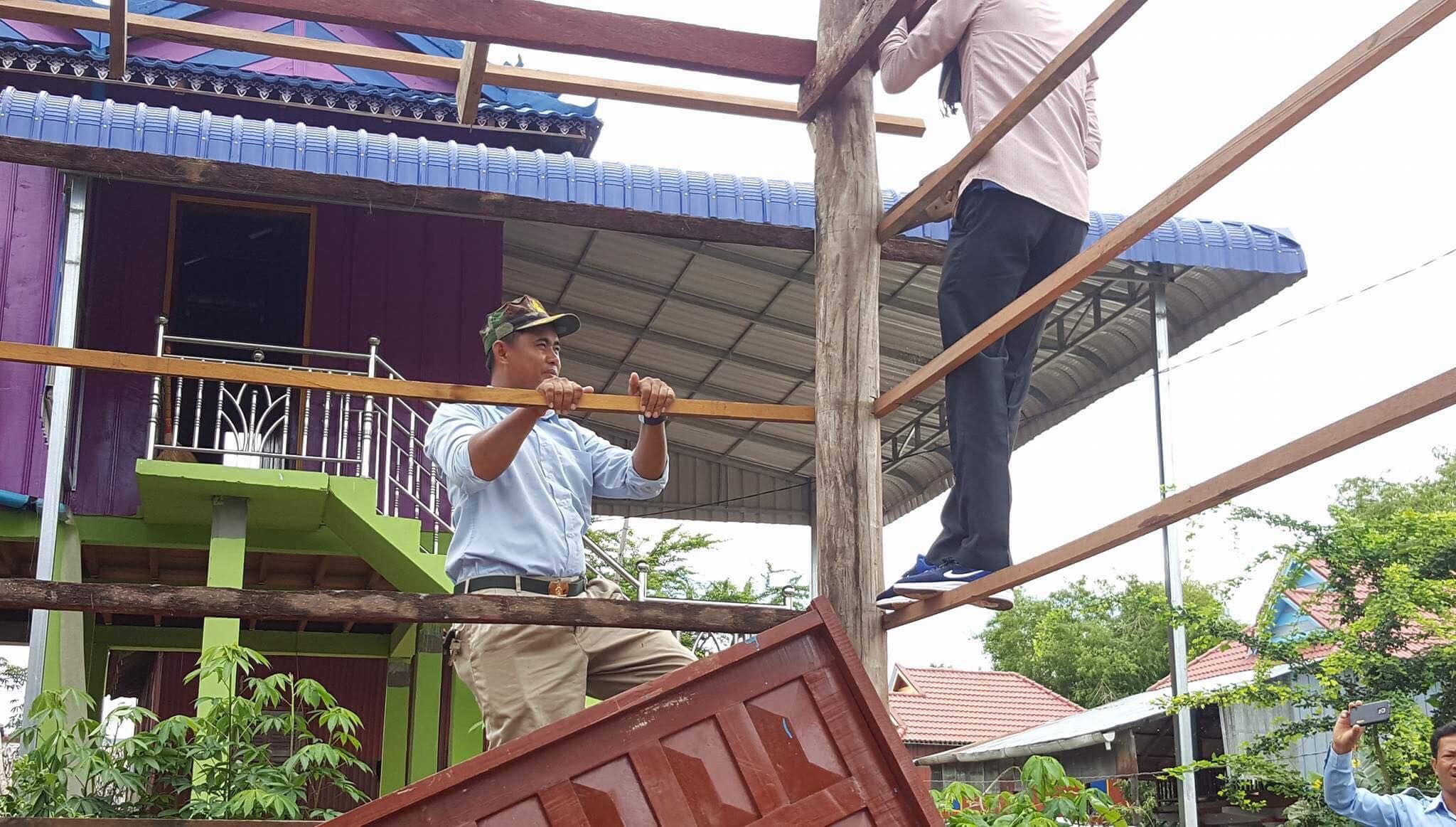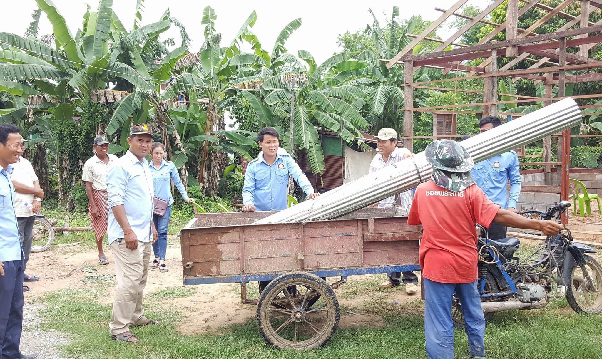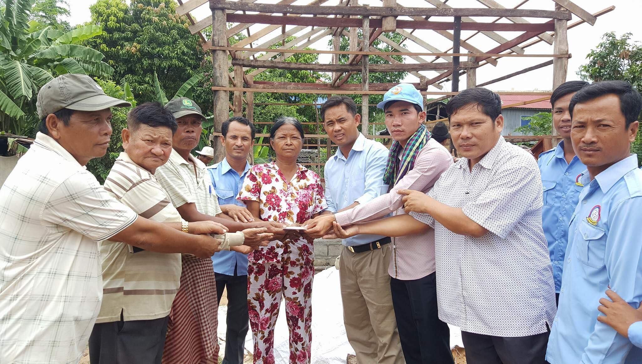 សមាជិកសមាជិកាសហភាពសហព័ន្ធយុវជនកម្ពុជា ស្រុកអង្គរបូរី និងក្រុមសម្ព័ន្ធយុវជនស្រលាញ់សន្តិភាព បាននាំយកស័ង្គសី ចំនួន៦០សន្លឹក និងថវិកាមួយចំនួន ដើម្បីជួយជួសជុលផ្ទះជូនអ្នកមីង សុខ ផៃ