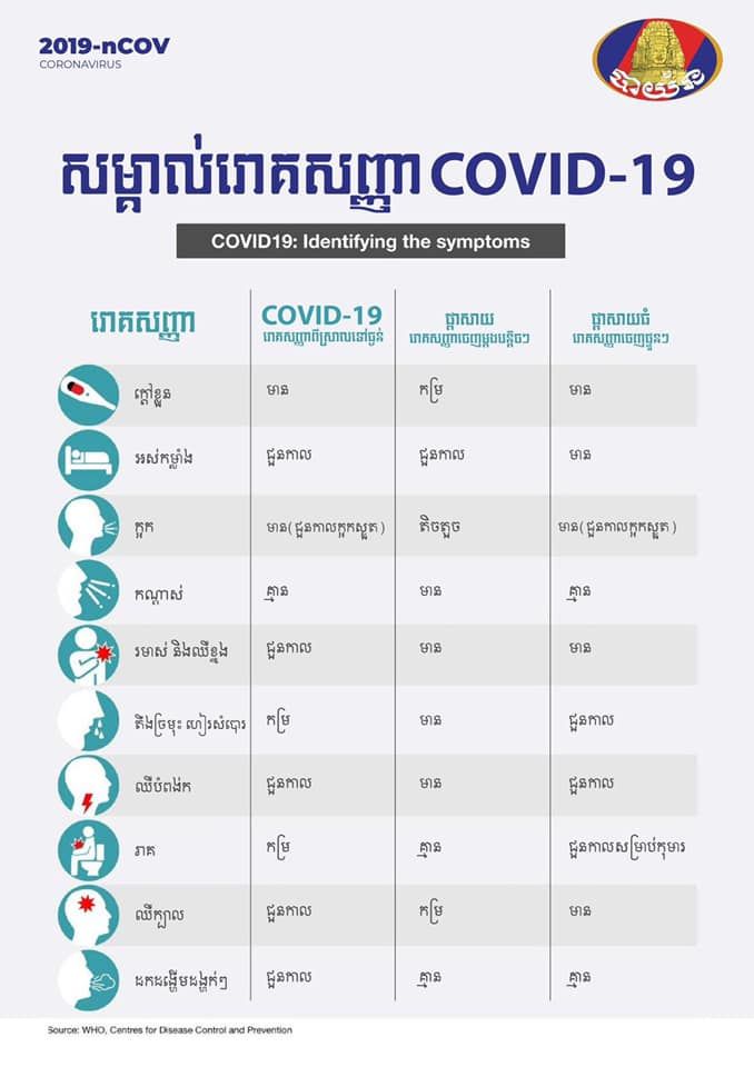 ស.ស.យ.ក. បន្តចែករំលែកព័ត៌មានសំខាន់ៗដែលជាប្រយោជន៍សម្រាប់បងប្អូន ដើម្បីជៀសផុតពីការរីករាលដាលនៃវីរុសខូវីដ១៩។ សូមបងប្អូនបន្តរក្សាឲ្យបាននូវការការពារសុខភាពផ្ទាល់ខ្លួនជានិច្ច។