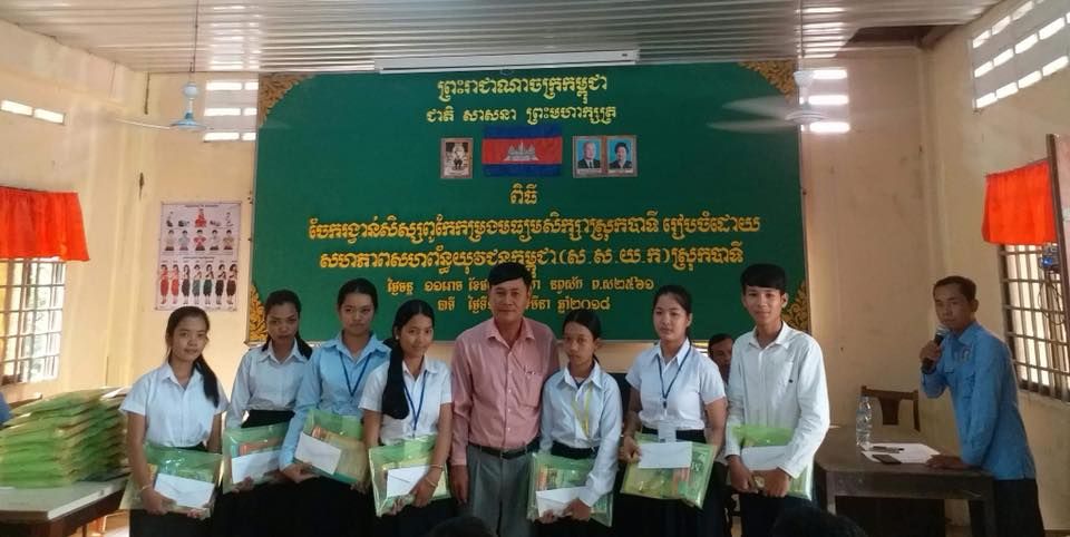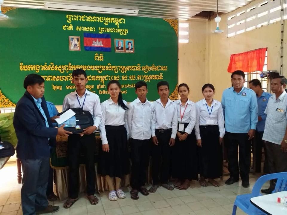 សហភាពសហព័ន្ធយុវជនកម្ពុជា ស្រុកបាទី បានរៀបចំពិធីចែករង្វាន់សិស្សពូកែកម្រងមធ្យមសិក្សា ជូនប្អូនៗជាសិស្សពូកែចំនួន ៦០នាក់ ។