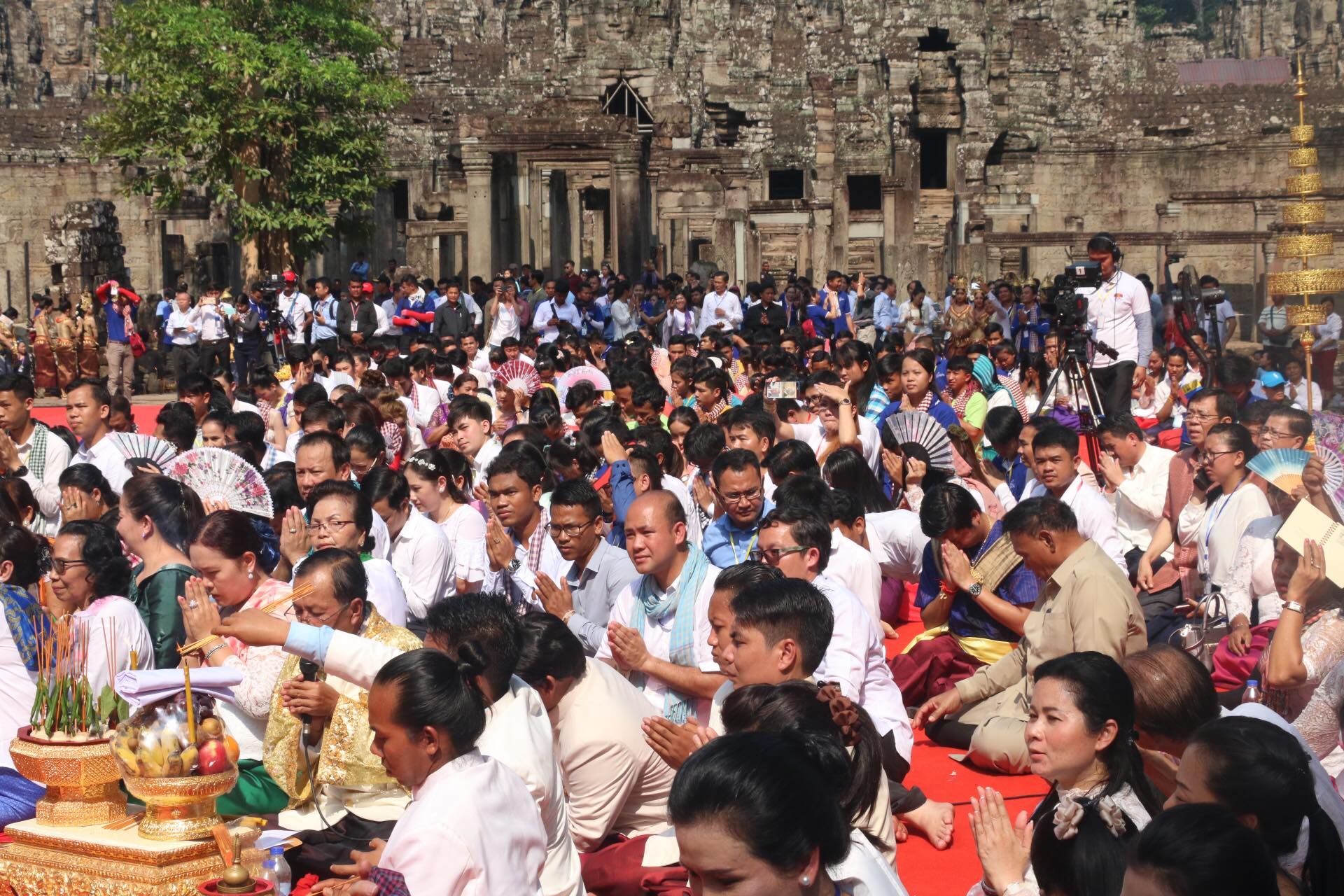 សម្តេចកិតិ្តព្រឹទ្ធបណ្ឌិត ប៊ុន រ៉ានី ហ៊ុនសែន ព្រះសង្ឃ មន្ត្រីនៃរាជរដ្ឋាភិបាល សមាជិកសមាជិកាសហភាពសហព័ន្ធយុវជនកម្ពុជា ប្រជាពលរដ្ឋ បាននិមន្ត និងអញ្ជើញចូលរួមក្នុងពិធីទទួល និងអំណរសាទរទេវតាឆ្នាំថ្មី ឆ្នាំច សំរឹទ្ធស័ក ព.ស២៥៦២ ព្រះនាម មហោទរាទេវី នៅមុខប្រាសាទបាយ័ន ខេត្តសៀមរាប។