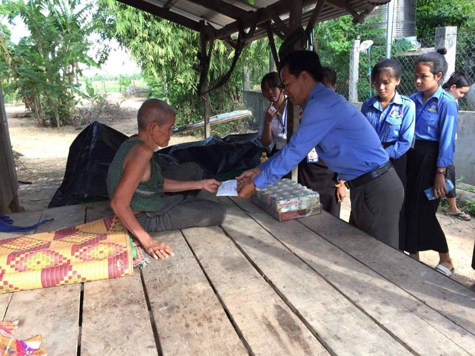 សមាជិកសមាជិកា ស.ស.យ.ក. នៃវិទ្យាល័យ គិត ម៉េង ប្រាសាទ បានចូលរួមជាមួយ លោក កៅ សុធី នាយករង និង គណៈគ្រប់គ្រងសាលា លោកគ្រូ អ្នកគ្រូ ទៅសួរសុខទុក្ខ ព្រមទាំងនាំយកថវិកា និងអំណោយមួយចំនួន ទៅជូនលោកយាយ មាន យ៉ែម អាយុ ៨១ឆ្នាំ ដែលជាមនុស្សចាស់ជរាមានជីវភាពក្រខ្សត់ ហេីយកំពុងទទួលបន្ទុកមើលថែកូនប្រុស ស្រីពីរនាក់ដែលសុទ្ធតែមានជម្ងឺសរសៃប្រសាទ។