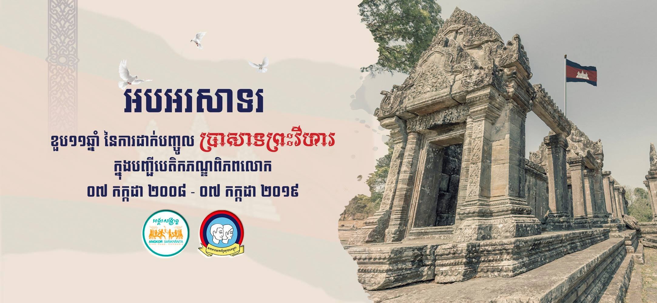 អបអរសារទរ ខួប១១ឆ្នាំនៃការដាក់បញ្ចូលប្រាសាទព្រះវិហារ ទៅជាសម្បត្តិបេតិកភណ្ឌពិភពលោក ប្រកបដោយសេចក្តីមោទក និងដ៏មានតម្លៃមិនអាចកាត់ថ្លៃបាន