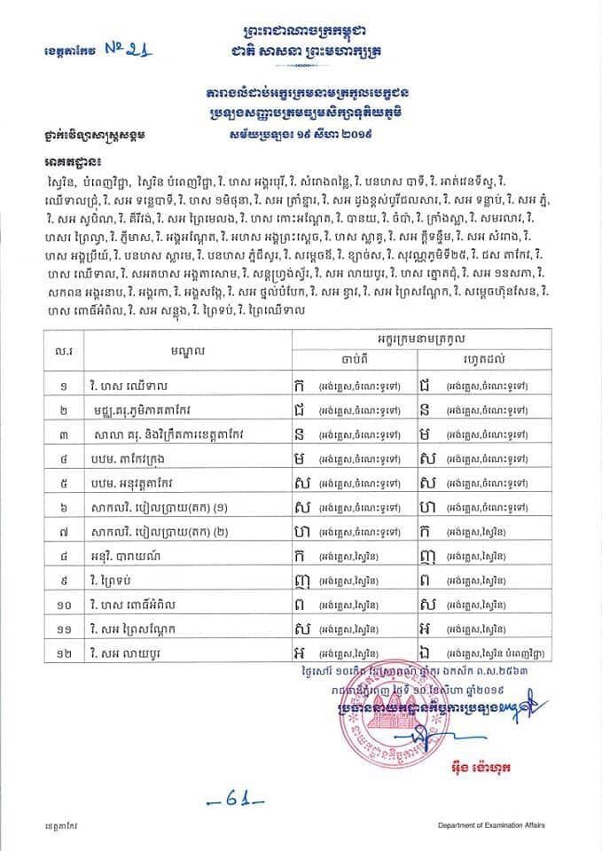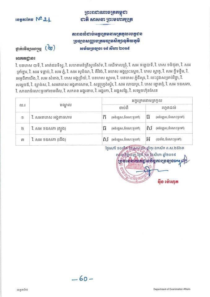 តារាងលំដាប់អក្ខរក្រមនាមត្រកូលបេក្ខជនប្រឡងសញ្ញាបត្រមធ្យមសិក្សាទុតិយភូមិ សម័យប្រឡង ៖ ១៩ សីហា ២០១៩