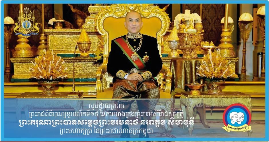 នៅក្នុងឱកាសដ៏មហាជ័យមង្គលបវរថ្លៃថ្លា ពោរពេញដោយក្ដីសោមនស្សរីករាយ នៃពិធីបុណ្យខួបលើកទី១៥ នៃការគ្រងព្រះបរមរាជសម្បត្តិរបស់ ព្រះករុណា ព្រះបាទសម្ដេច ព្រះបរមនាថ នរោត្តម សីហមុនី ព្រះមហាក្សត្រ នៃព្រះរាជាណាចក្រកម្ពុជា