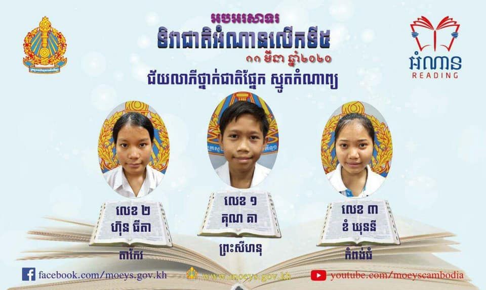 អបអរសាទរយុវសិស្ស ០៣រូបមកពីខេត្តតាកែវ ដែលទទួលបានជ័យលាភី ក្នុងកម្មវិធីប្រកួតប្រជែងអាន ស្មូតកំណាព្យ និងតែងនិពន្ធ "ពានរង្វាន់សម្តេចតេជោ ហ៊ុន សែន" ឆ្នាំ២០២០