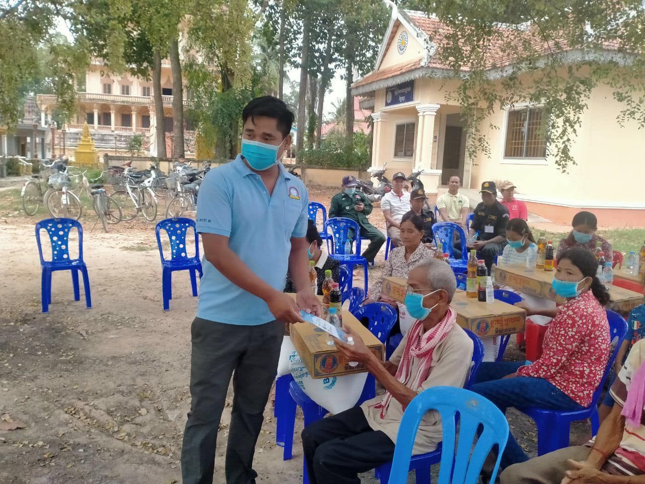 ការចែកជូនស្បៀងអាហារដល់ប្រជាពលរដ្ឋក្រីក្រ ចំនួន៦១គ្រួសារ របស់អាជ្ញាធរស្រុកព្រៃកប្បាស និងយុទ្ធនាការបញ្រ្ជាបការយល់ដឹងពីគ្រោះថ្នាក់នៃជំងឺកូវីដ១៩ ដល់ប្រជាពលរដ្ឋកម្ពុជា នៅខេត្តតាកែវ របស់ ស.ស.យ.ក. ស្រុកព្រៃកប្បាស