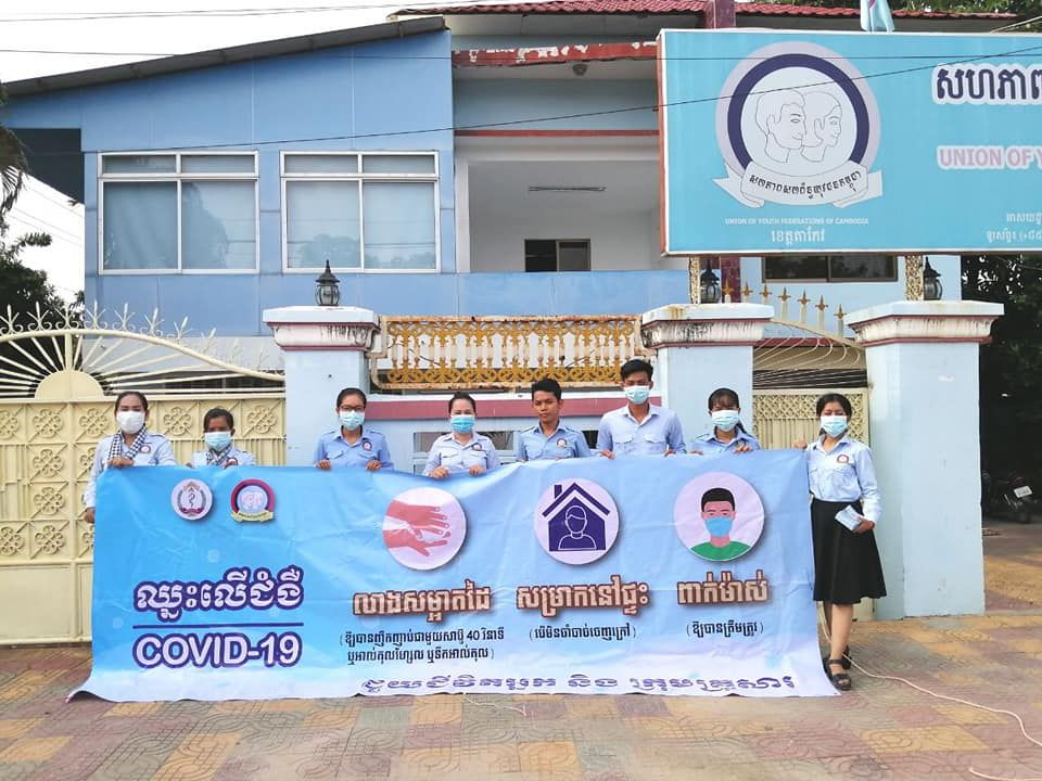 ក្រុមការងារ លេខាធិការដ្ឋាន ស.ស.យ.ក-ខេត្ត និងក្រុងដូនកែវ សរុប ១០នាក់ ស្រី ០៧នាក់ បាន ចងបដាផ្សព្វផ្សាយ ចំនួន ០១ផ្ទាំង ស្តីពីការលាងសម្អាតដៃ រក្សាអនាម័យ រក្សាគម្លាតសង្គម ការពាក់ម៉ាស់ការពារ និងចែកខិត្តប័ណ្ណ ចំនួន ១២២សន្លឹក ដល់ប្រជាពលរដ្ឋ នៅតាមបណ្តោយផ្លូវមុខស្នាក់ការ ស.ស.យ.ក-ខេត្ត នាព្រឹកថ្ងៃទី២៥ ខែមេសា ឆ្នាំ២០២០ ។