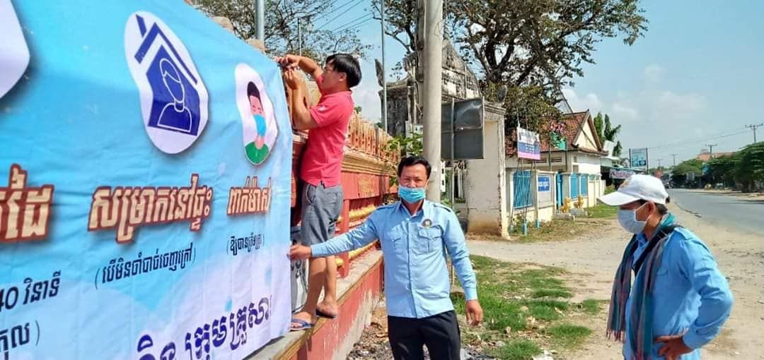 ព្រឹកថ្ងៃទី២៥ខែមេសា ឆ្នាំ២០២០ ក្រុមការងារ ស.ស.យ.កស្រុកអង្គរបូរី​   ដឹកនាំដោយលោក ជា​ ​សម្បត្តិ​​​ អនុប្រធាន​​ស.ស.យ.ក​ ​ស្រុក​​ លោក​​  ប៉ែន​​​ រដ្ឋា​​  អនុប្រធាន​​  ស.ស.យ.ក  ស្រុក​​​​ លោក  មុត​​  សុវណ្ណារិទ្ធ​  អនុប្រធាន​  ស.ស.យ.ក​ ​ស្រុក​​​​ ​និងសមាជិក   បានបន្តចងបដាផ្សព្វផ្សាយស្ដីពីការលាងសម្អាតដៃ ការរក្សាអនាម័យ ការស្នាក់នៅក្នុងផ្ទះកាត់បន្ថយការជួបជុំ រក្សាគម្លាតសង្គម និងការពាក់ម៉ាស់ការពារ ដល់ប្រជាពលរដ្ឋនៅទីប្រជុំជនទីរួមស្រុកអង្គរបូរី។