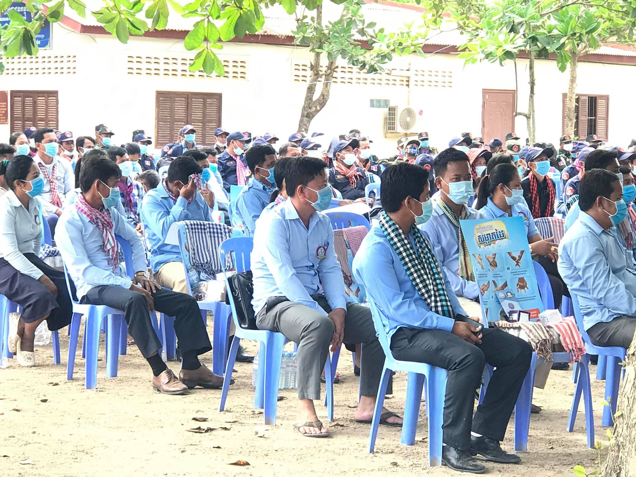 “ ឯកឧត្ដមវេជ្ជបណ្ឌិត សុខ ផេង និង ឯកឧត្ដម សុខ ពុទ្ធិវុធ អញ្ជើញថ្លែងអំណរគុណដល់យុវជន ស.ស.យ.ក. ស្រុកទ្រាំង និងប្រជាការពារភូមិទូទាំងស្រុកទ្រាំង ខេត្តតាកែវ ដែលបានចូលរួមយ៉ាងសកម្មក្នុងយុទ្ធនាការបញ្រ្ជាបការយល់ដឹងស្ដីពីគ្រោះថ្នាក់នៃជំងឺកូវីដ១៩ ជូនដល់ប្រជាជនកម្ពុជា នៅទូទាំងស្រុកទ្រាំង “ សមាជិក សមាជិកា ស.ស.យ.ក. ស្រុកទ្រាំង និងប្រជាការពារភូមិទូទាំងស្រុកទ្រាំង បានចូលរួមយ៉ាងសកម្មក្នុងកិច្ចសហការជាមួយអាជ្ញាធរមូលដ្ឋាន និងមន្រ្តីសុខាភិបាលដើម្បីផ្សព្វផ្សាយពីហានិភ័យនៃជំងឺកូវីដ១៩ និងវិធានការការពារ ទប់ស្កាត់ការរីករាលដាលនៃជំងឺនេះជូនដល់ប្រជាពលរដ្ឋទូទាំងឃុំទាំង១៤ ក្នុងស្រុកទ្រាំង។ ពិធីនេះស្ថិតក្រោមអធិបតីភាព ឯកឧត្តមវេជ្ជបណ្ឌិត សុខ ផេង រដ្ឋលេខាធិការក្រសួងសុខាភិបាល និងជាប្រធានក្រុមការងាររាជរដ្ឋាភិបាលចុះមូលដ្ឋានស្រុកទ្រាំង និង ឯកឧត្តម សុខ ពុទ្ធិវុធ រដ្ឋលេខាធិការក្រសួងប្រៃសណីយ៍និងទូរគមនាគមន៍ និងជាអនុប្រធានក្រុមការងាររាជរដ្ឋាភិបាលចុះមូលដ្ឋានស្រុកទ្រាំង ព្រមទាំងមានការចូលរួមពី ឯកឧត្ដម លោកជំទាវ លោក លោកស្រី អនុប្រធានក្រុមការងាររាជរដ្ឋាភិបាលចុះមូលដ្ឋានស្រុក ឃុំ គណៈអភិបាលស្រុក សមាជិកក្រុមប្រឹក្សាស្រុក ប្រជាការពារភូមិ១៥៣រូប សមាជិក ស.ស.យ.ក. ៥២រូប ផងដែរ។ ស្ថិតក្នុងពិធីនេះ ឯកឧត្ដមគណៈអធិបតីក៏បានជម្រាបជូនបងប្អូនប្រជាការពារភូមិ និងយុវជន ស.ស.យ.ក. ទាំងអស់ផងដែរថាបើទោះបីជាស្ថានភាពជំងឺនៅក្នុងប្រទេសកម្ពុជាមានការព្យាបាលបានជាសះស្បើយជាបន្តបន្ទាប់ក្ដី ក៏ត្រូវបន្តពង្រឹងការប្រុងប្រយ័ត្នខ្ពស់ ថែរក្សាអនាម័យ ជាពិសេសអនុវត្តតាមវិធានការណែនាំនានារបស់ក្រសួងសុខាភិបាលឱ្យបានខ្ជាប់ខ្ជួន និងចូលរួមផ្សព្វផ្សាយឱ្យបានកាន់តែទូលំទូលាយនូវហានិភ័យនៃជំងឺកូវីដ១៩ នេះ ទៅដល់ក្រុមគ្រួសារដើម្បីចូលរួមការពារ ទប់ស្កាត់ កុំឱ្យមានឆ្លងនៅក្នុងសហគមន៍របស់ខ្លួន។ ឆ្លៀតក្នុងឱកាសនេះដែរ ឯកឧត្ដមគណៈអធិបតីក៏បាននាំយកមកនូវសម្ភារមួយចំនួនចែកជូនដល់ សមាជិក ស.ស.យ.ក. និងប្រជាការពារភូមិ ដូចជាអាហារសណ្ដែកកំប៉ុង សាប៊ូលាងដៃ ជែលសម្លាប់មេរោគ ម៉ាស់ និងខិតប័ណ្ណផ្សព្វផ្សាយស្ដីពីវិធានការការពារទប់ស្កាត់ការឆ្លងរីករាលនៃជំងឺកូវីដ១៩ ផងដែរ។