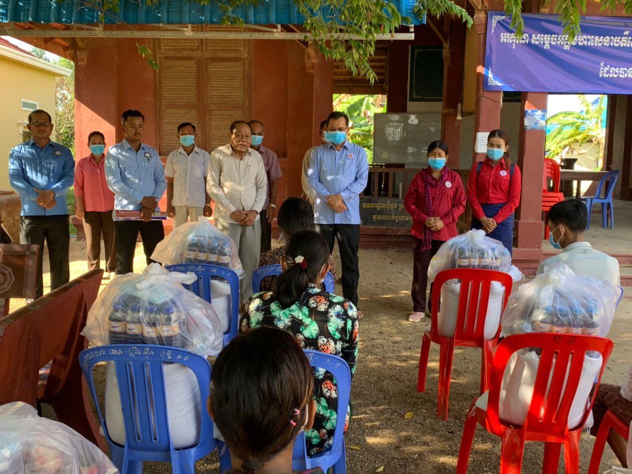 « លាងសម្អាតដៃជាប្រចាំ ពាក់ម៉ាស រក្សាគម្លាតសង្គម និងគម្លាតបុគ្គល ជាខ្លឹមសារចម្បងមួយនៅក្នុងយុទ្ធនាការបញ្រ្ជាបការយល់ដឹងស្ដីពីគ្រោះថ្នាក់នៃជំងឺកូវីដ-១៩ ជូនដល់ប្រជាពលរដ្ឋនៅក្នុងឃុំដូងខ្ពស់ ស្រុកបូរីជលសារ » ស.ស.យ.ក. ស្រុកបូរីជលសារ ខេត្តតាកែវ បានចូលរួមជាមួយអាជ្ញាធរស្រុក អាជ្ញាធរឃុំ ភូមិ មណ្ឌលសុខភាពឃុំ និងប៉ុស្តិ៍រដ្ឋបាល ដែលដឹកនាំដោយ លោក ទុយ សុភ័ក្រ្ត អភិបាលនៃគណៈអភិបាលស្រុក ចុះផ្សព្វផ្សាយ អប់រំ អំពីវិធានការបង្ការការរត្បាតនៃជំងឺកូវីដ-១៩ តាមការណែនាំរបស់ក្រសួងសុខាភិបាល ដល់ប្រជាពលរដ្ឋនៅឃុំដូងខ្ពស់ស្រុកបូរីជលសារ ខេត្តតាកែវ ព្រមទាំងចែកអំណោយកាកបាទក្រហមកម្ពុុជា រួមមានអង្ករ ទឹកត្រី ត្រីខកំប៉ុង អំបិល ប៊ីចេង ម៉ាស់ អាល់កុល និងសាប៊ូលាងដៃដល់ប្រជាពលរដ្ឋក្រីក្រចំនួន ៨ គ្រួសារ នៅក្នុងឃុំផងដែរ។