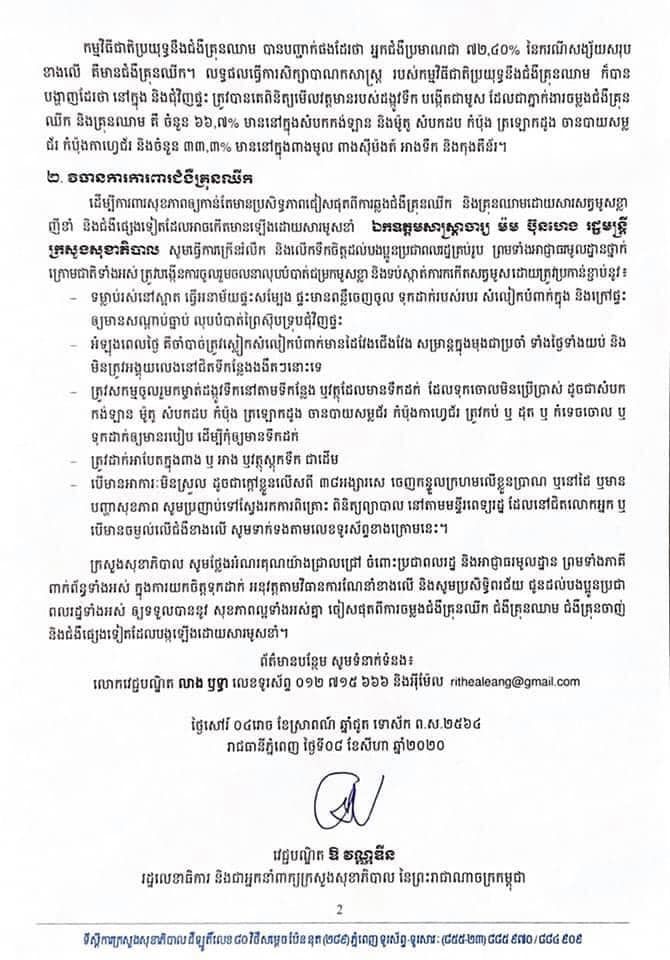 សូមចូលរួមការពារជំងឺគ្រុនឈីក គ្រុនឈាម និងជំងឺផ្សេងៗទៀតដែលបណ្តាលមកពីមូសខាំ ទន្ទឹមនឹងការការពារការចម្លងវីរុសកូវីដ-១៩ ចូលក្នុងសហគមន៌ ឲ្យបានគ្រប់ៗគ្នា។