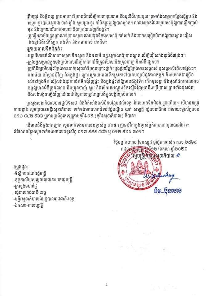 “សេចក្តីណែនាំក្រេីនរំលឹក ស្តីពីការឆ្លេីយតបនៅពេលទឹកជំនន់” ក្រសួងសុខាភិបាលនៃព្រះរាជាណាចក្រកម្ពុជា