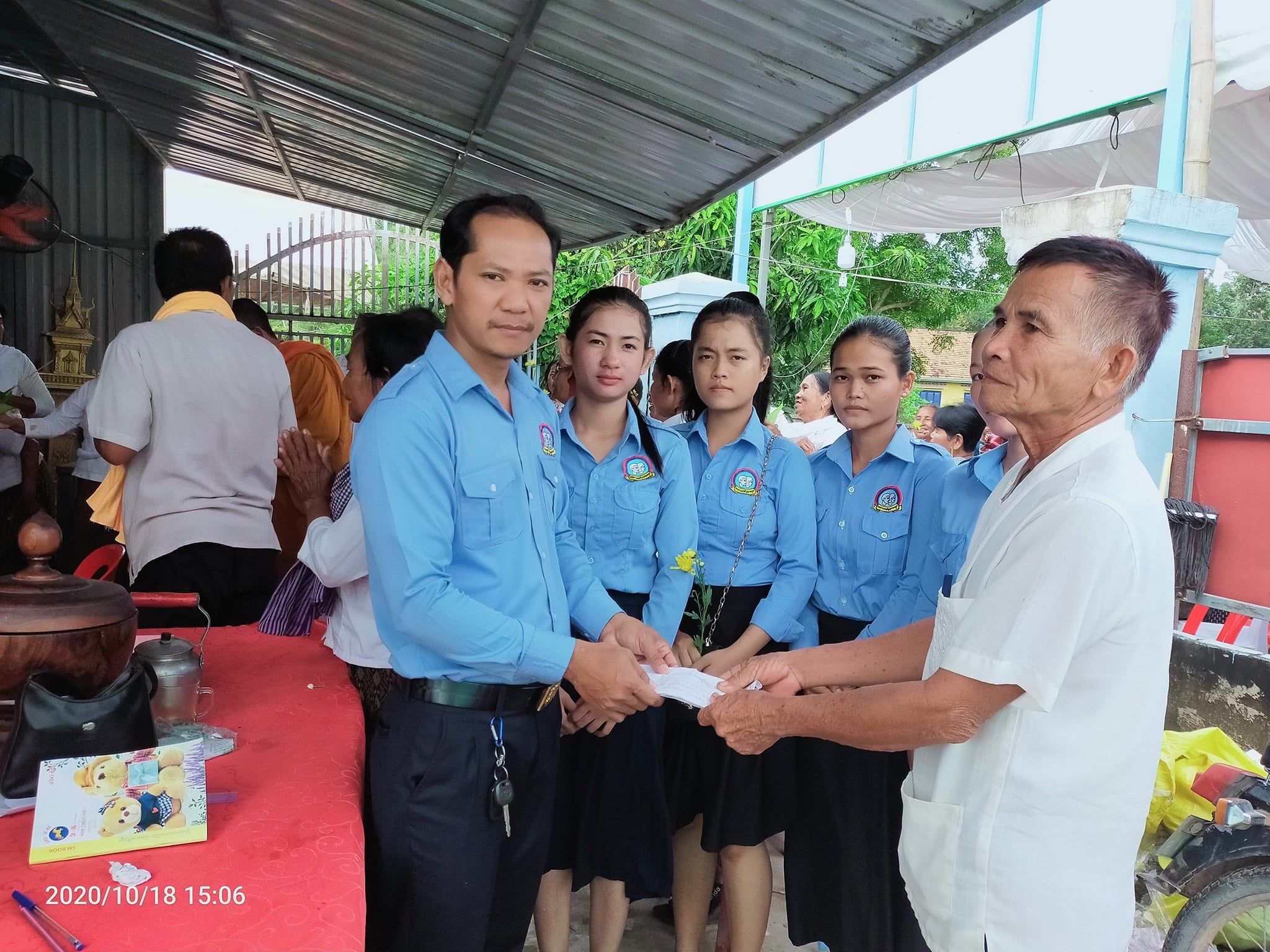 ក្រុមការងារ ស.ស.យ.ក. ប្រចាំវិទ្យាល័យ សុខ អាន លាយបូរ នាំបច្ច័យមូលនិធិ ស.ស.យ.ក. វិទ្យាល័យ សុខ អាន លាយបូរ ស្រុកត្រាំកក់ ចូលរួមរំលែកមរណទុក្ខសព លោកតា មួង មុំ