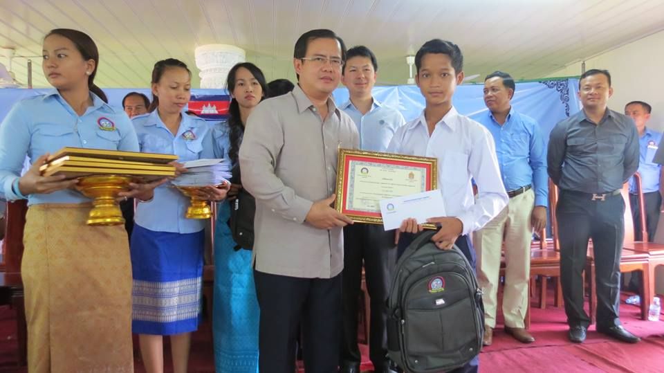 ដោយម្នាក់ៗទទួលបាន កាតាបមាននិម្មិតសញ្ញាស.ស.យ.កចំនួន០១ សៀវភៅ០៦ក្បាល ប៊ិច០២ដើម កាបូបដាក់ប៊ិច០១ ខ្មៅដៃ០១ដើម ទឹកលុប០១ដើម ហ្វឺតសរសេរ០៤ដើម ប្រដាប់លុបក្តារខៀនចំនួន០១ លិខិតសរសើរ០១ និងថវិកាមួយចំនួន។ ហើយចំពោះសាលារៀនទាំង២៦ទូទាំងខេត្តតាកែវ ដែលមានសិស្សានុសិស្សប្រឡងជាប់ជាសិស្សពូកែទូទាំងខេត្ត ដោយក្នុងមួយសាលារៀនយើងបានធ្វើការប្រគល់ជូននូវម៉ាស៊ីនព្រីន+ស្កែន+ថតចម្លង ចំនួន០១គ្រឿងផងដែរ៕