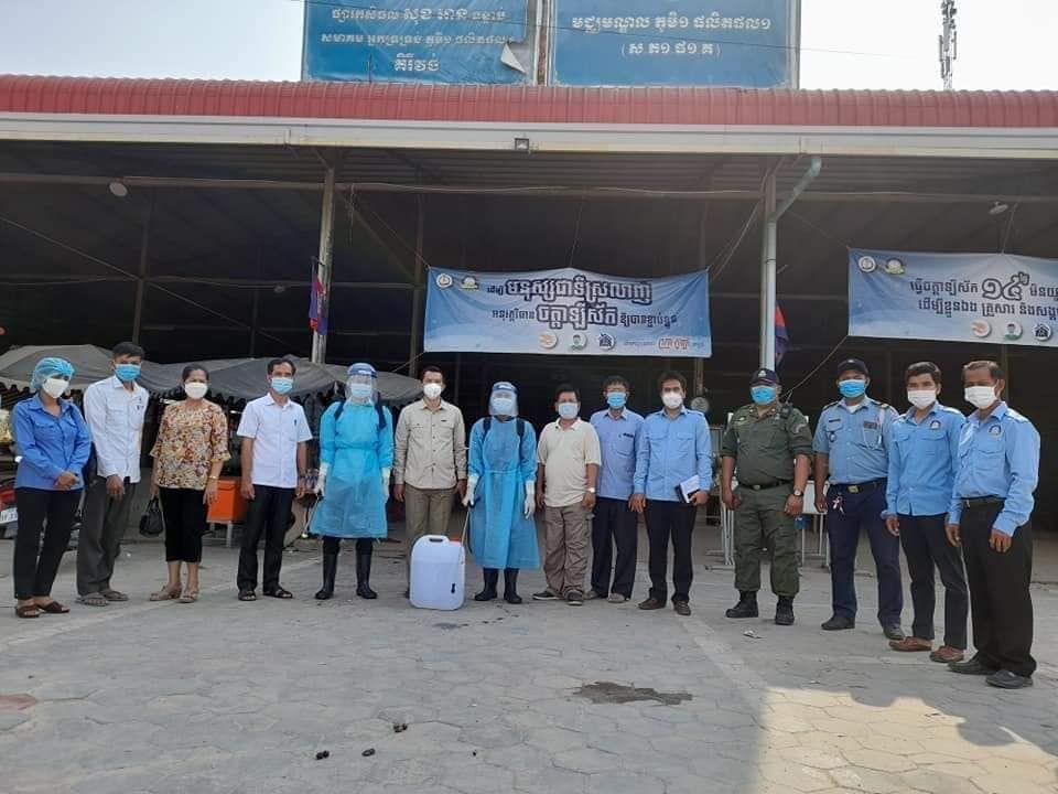 គណៈកម្មាធិការ ស.ស.យ.ក.ស្រុកគីរីវង់ បានចូលរួមជាមួយរដ្ឋបាលស្រុក ចុះត្រួតពិនិត្យការបាញ់ថ្នាំសម្លាប់មេរោគ នៅផ្សារកសិផល សុខ អាន ទន្លាប់