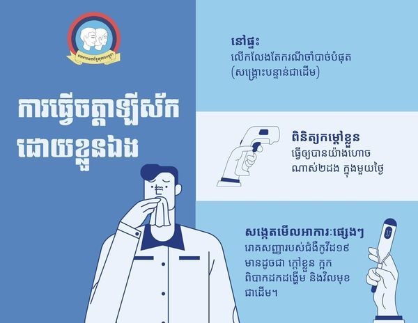 ប្រសិនបើអ្នកជាប់ពាក់ព័ន្ធ ឬមានការសង្ស័យ ថាបានប៉ះពាល់នឹងអ្នកវិជ្ជមានកូវីដ-១៩ សូមធ្វើចត្តាឡីស័ក ឱ្យបានយ៉ាងតិច ១៤ថ្ងៃ។ ការប្រកាន់ខ្ជាប់បែបបទការធ្វើចត្តាឡីស័កបានល្អ គឺជាវិធីមួយដ៏មានប្រសិទ្ធភាព ដើម្បីការពារខ្លួន អ្នកនៅជុំវិញខ្លួនអ្នក និងសហគមន៍ ពីការឆ្លងរីករាលដាលនៃជំងឺកូវីដ-១៩។ សូមកុំមើលស្រាលស្ថានការណ៍! សូមការពារខ្លួនអ្នក ក៏ដូចជាការពារអ្នកជាទីស្រឡាញ់របស់អ្នក! ថ្ងៃចន្ទ ១២រោច ខែជេស្ឋ ឆ្នាំឆ្លូវ ត្រីស័ក ព.ស.២៥៦៥ ត្រូវនឹងថ្ងៃទី៧ ខែមិថុនា ឆ្នាំ២០២១