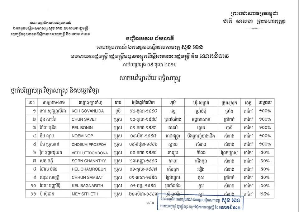 ជ័យលាភីអាហារូបករណ៍ ឯកឧត្តមបណ្ឌិតសភាចារ្យ សុខ អាន និងលោកជំទាវ ឆ្នាំ២០១៥ នៅសាកលវិទ្យាល័យ ពុទ្ធិសាស្ត្រ