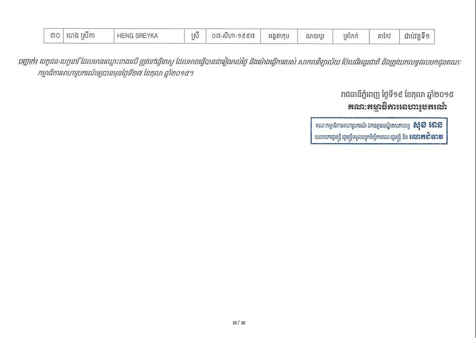 ប៊ែលធីអន្តរជាតិ និងប្រគល់លទ្ធផលមកគណៈកម្មាធិការអាហារូបករណ៍វិញឲ្យបានមុនថ្ងៃទី២៧ ខែតុលា ឆ្នាំ២០១៥។