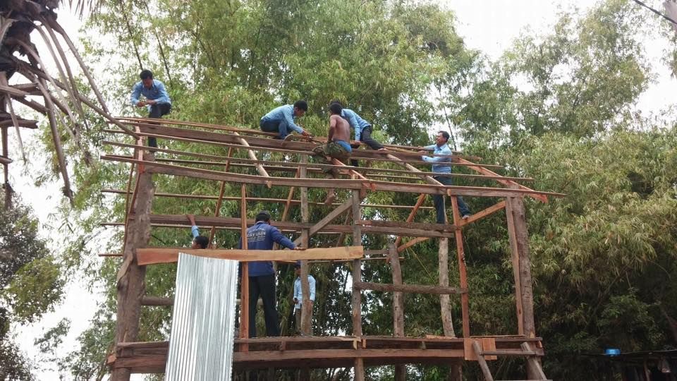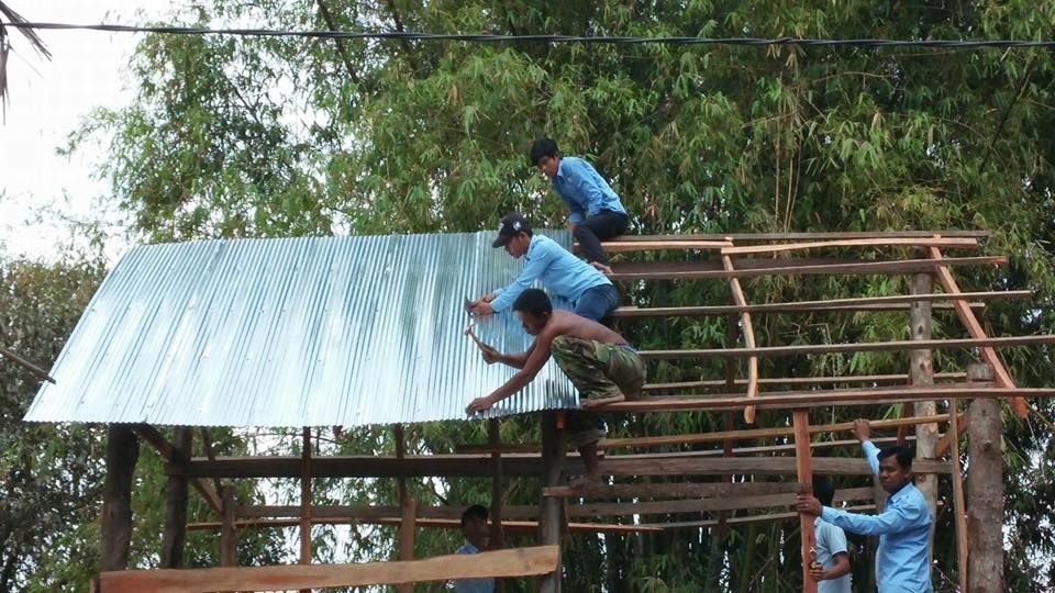 ស.ស.យ.ក. ស្រុកអង្គរបូរី ខេត្តតាកែវ ចំនួន១៤នាក់ ស្រី០២នាក់ បាននាំយកនូវស័ង្កសីចំនួន ១៥សន្លឹក ដើម្បីជួយសាងសង់ផ្ទះមួយខ្នង
