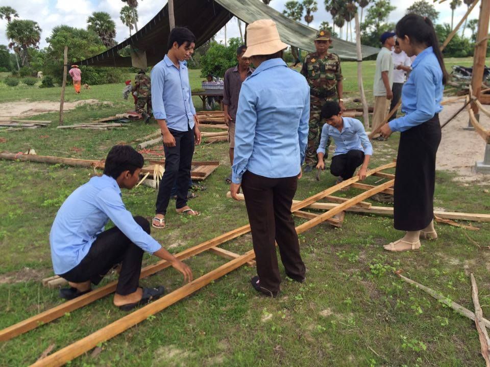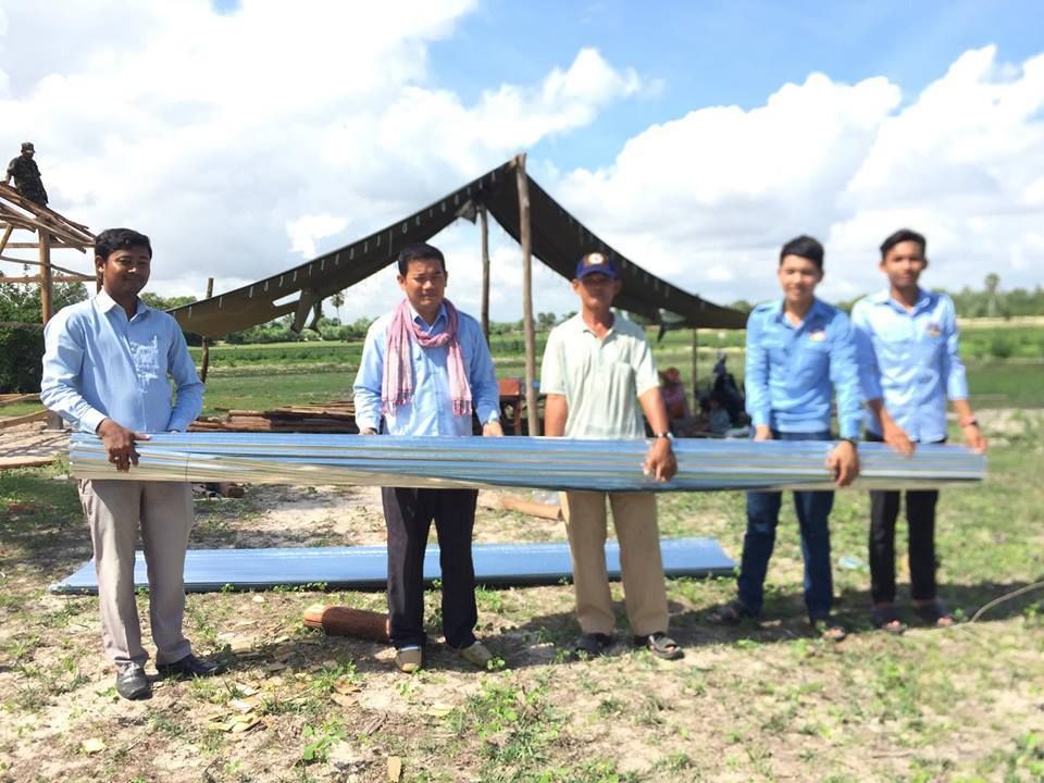 ស.ស.យ.ក. ស្រុកទ្រាំង ខេត្តតាកែវ ដឹកនាំដោយលោក អ៊ុំ ចំរើន អភិបាលរងស្រុក បាននាំយកស័ង្កសីចំនួន៣០សន្លឹក ដែលជាអំណោយរបស់ លោក សុខ ពុទ្ធិវុធ ប្រធានសហភាពសហព័ន្ធយុវជនកម្ពុជា ខេត្តតាកែវ ដើម្បីជួយជួសជុលផ្ទះ០១ខ្នង ជូនគ្រួសារមន្ត្រីយោធា