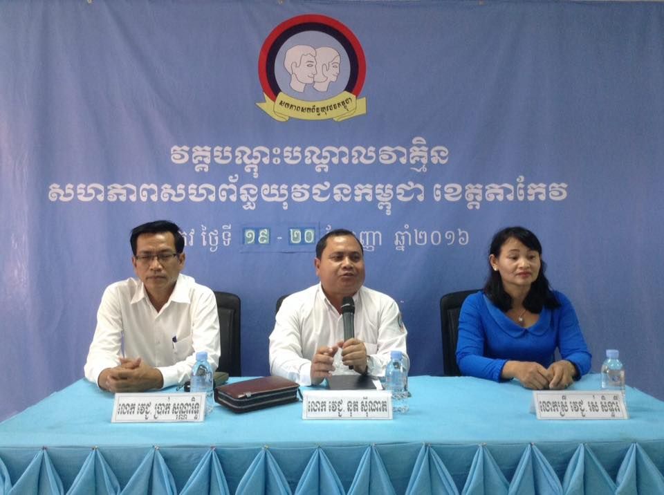 វគ្គបណ្ដុះបណ្ដាលវាគ្មិន សប្តាហ៍ទី៣ ស្តីអំពី « យុវជន និងវិស័យសុខាភិបាល - កម្មវិធីចែកឃីតដល់ស្ត្រីទើបឆ្លងទន្លេ » បានបើកនៅព្រឹកថ្ងៃទី១៩ ខែកញ្ញា ឆ្នាំ២០១៦ ក្រោមអធិបតីភាព លោកវេជ្ជបណ្ឌិត នុត ស៊ីណាត ប្រធានមន្ទីរសុខាភិបាលខេត្តតាកែវ ដែលនឹងធ្វើការបណ្តុះបណ្តាលរយៈពេល០២ថ្ងៃ គឺនៅថ្ងៃទី១៩-២០ ខែកញ្ញា ឆ្នាំ២០១៦ នៅស្នាក់ការ ស.ស.យ.ក-តាកែវ ដែលមានលោកវេជ្ជបណ្ឌិត ប្រាក់ សុណ្ណារិទ្ធ ប្រធានគាំពារមាតា និងទារកខេត្ត និងលោកស្រីវេជ្ជបណ្ឌិត រស់ សិទ្ធាវី អនុប្រធានផ្នែកគាំពារមាតា និងទារក ជាគ្រូឧទ្ទេសនាម។