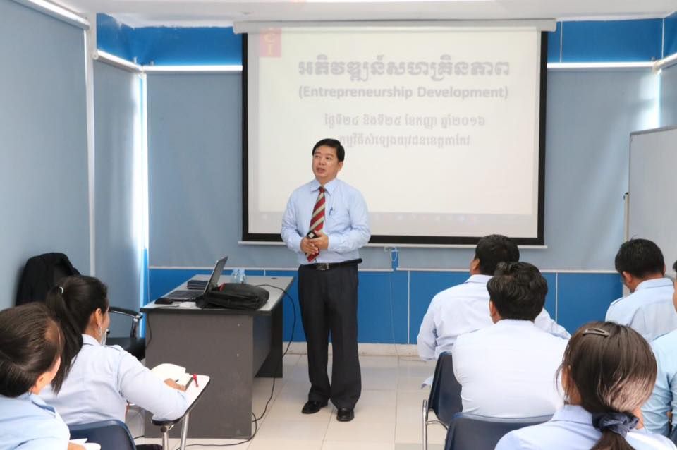 សប្តាហ៍ទី៤ នៃវគ្គបណ្ដុះបណ្ដាលវាគ្មិន ស្តីអំពី « យុវជន និងសហគ្រិនភាព» ដល់យុវជន ស.ស.យ.ក. ខេត្តតាកែវ ដែលប្រព្រឹត្តិទៅអស់រយៈពេលពីរថ្ងៃ នៅថ្ងៃទី២៤-២៥ ខែកញ្ញា ឆ្នាំ២០១៦ នៅស្នាក់ការ ស.ស.យ.ក-តាកែវ ដែលមាន ឯកឧត្តម ឌិន វីរៈ សមាជិកក្រុមប្រឹក្សាសេដ្ឋកិច្ច សង្គមកិច្ច និងវប្បធម៌ នៃទីស្តីការគណៈរដ្ឋមន្ត្រី ជាគ្រូឧទ្ទេសនាម បានបញ្ចប់ទៅប្រកបដោយជោគជ័យគួរជាទីមោទនៈ ដោយវគ្គបណ្តុះបណ្តាលនេះបានផ្តល់នូវចំណេះដឹងទាក់ទងទៅនឹងភាពជាសហគ្រិន យុទ្ធសាស្ត្រ ផែនការអាជីវកម្ម ភាពជោគជ័យនិងទំនួលខុសត្រូវក្នុងសង្គម ព្រមទាំងបានធ្វើកិច្ចពិភាក្សាការងារជាក្រុមប្រកបដោយសាមគ្គីភាព។