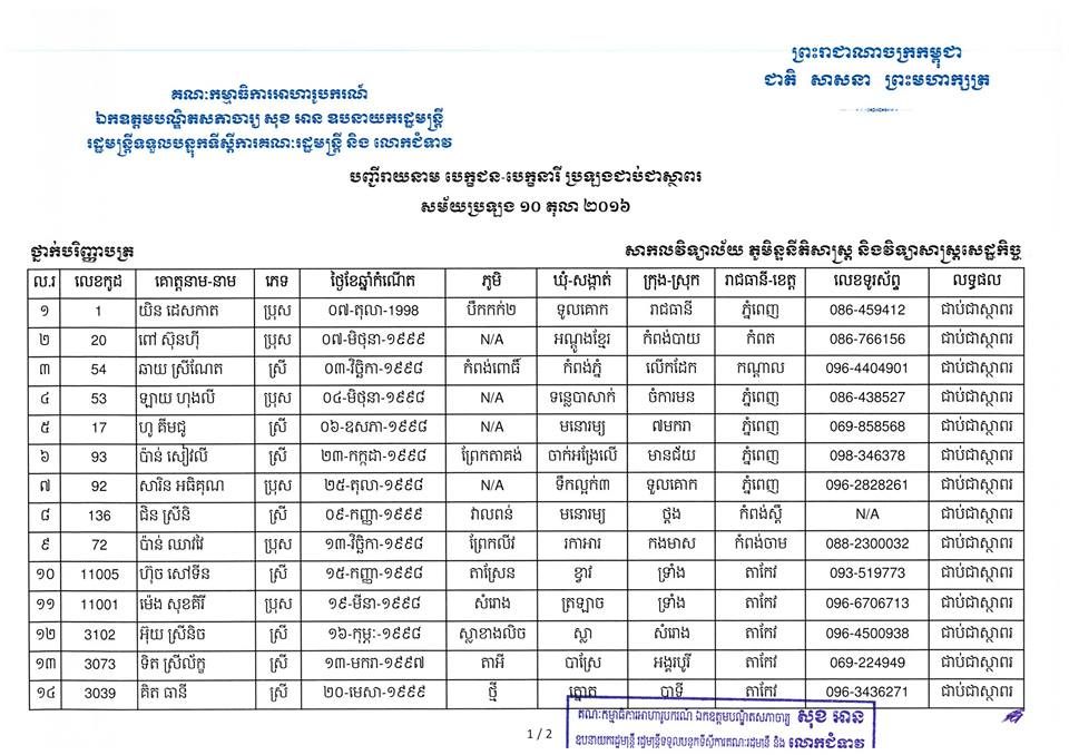 លទ្ធផលនៃការប្រឡងអាហារូបករណ៍ ឯកឧត្តមបណ្ឌិតសភាចារ្យ សុខ អាន និងលោកជំទាវ ឆ្នាំសិក្សា ២០១៦-២០១៧ នៅសាកលវិទ្យាល័យ ភូមិន្ទនីតិសាស្ត្រ និងវិទ្យាសាស្ត្រសេដ្ឋកិច្ច