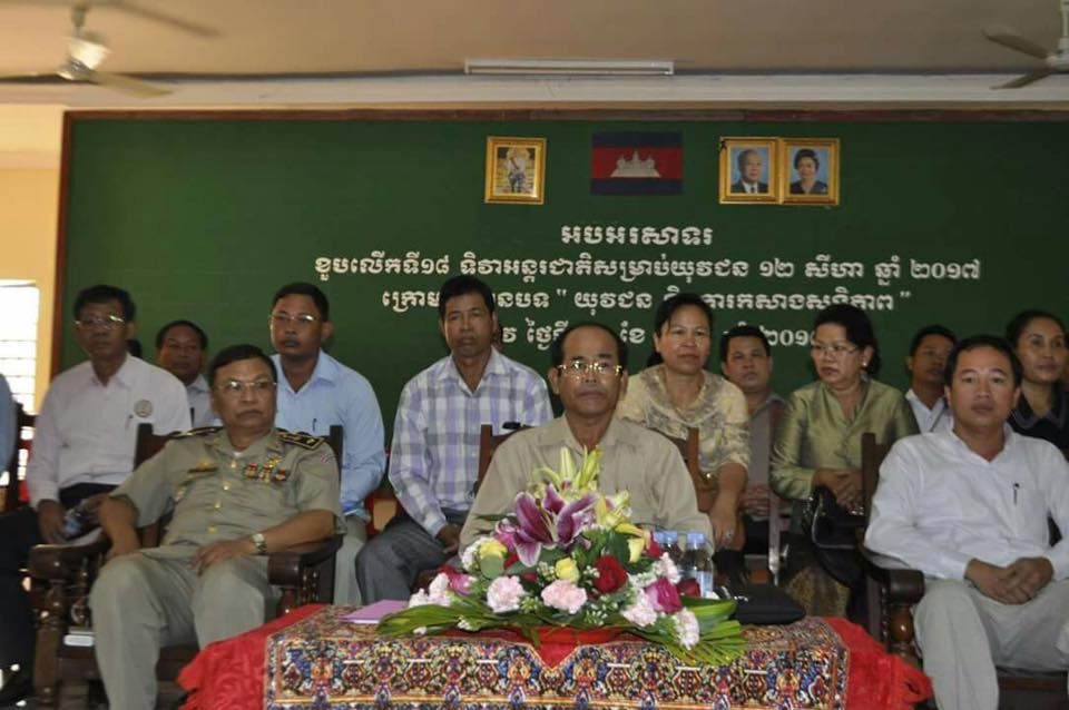 សមាជិក ស.ស.យ.ក. ខេត្តតាកែវ ចំនួន៥០នាក់ បានចូលរួមក្នុងពិធីអបអរសាទរខួបលើកទី១៨ នៃទិវាអន្តរជាតិសម្រាប់យុវជន ថ្ងៃទី១២ ខែសីហា ឆ្នាំ ២០១៧ ក្រោមប្រធានបទ " យុវជន និងការកសាងសន្តិភាព " ដែលស្ថិតក្រោមអធិបតីភាពលោក ស៊ីវ សុខន ប្រធានមន្ទីរអប់រំ យុវជន និងកីឡាខេត្តតាកែវ ដោយមានការចូលរួមពីមន្ទីរ អង្គភាពជុំវិញខេត្ត ការិយាល័យជំនាញមន្ទីរ អង្គការដៃគូរនានា យុវជន វិទ្យាល័យជាស៊ីមតាកែវ វិទ្យាល័យ ហ៊ុន សែនឈើទាល និស្សិតសាកលវិទ្យាល័យបៀលប្រាយ អង្គរខេមរា និងវិទ្យាស្ថានពហុបច្ចេកទេសភូមិភាគតេជោសែនតាកែវ សរុបចំនួន ៥១១នាក់ នៅសាលសហសិក្សាមជ្ឈមណ្ឌលគរុកោសល្យភូមិភាគតាកែវ។