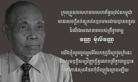 ក្រុមគ្រួសារសហភាពសហព័ន្ធយុវជនកម្ពុជាមានសេចក្ដីតក់ស្លុតឥតឧបមារដោយបានទទួលដំណឹងមរណភាពរបស់ព្រឹទ្ធាចារ្យ វណ្ណ ម៉ូលីវណ្ណ
