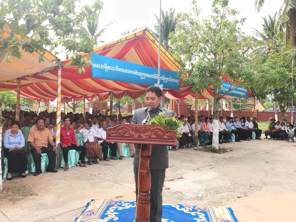 ពិធីសម្ពោធនេះស្ថិតក្រោមអធិបតីភាពរបស់ ឯកឧត្ដមនាយឧត្ដមសេនីយ៍កិត្តិបណ្ឌិត ហ៊ីង ប៊ុនហៀង តំណាងដ៏ខ្ពង់ខ្ពស់សម្ដេចអគ្គមហាសេនាបតីតេជោ ហ៊ុន សែន នាយករដ្ឋមន្ត្រីនៃព្រះរាជាណាចក្រកម្ពុជា និងឯកឧត្ដមបណ្ឌិត ម៉ុក ម៉ារ៉េត តំណាងរាស្រ្តមណ្ឌលតាកែវ និងជាសហប្រធានក្រុមការថ្នាក់កណ្ដាលចុះជួយស្រុកសំរោងទទួលបន្ទុក៣ឃុំ