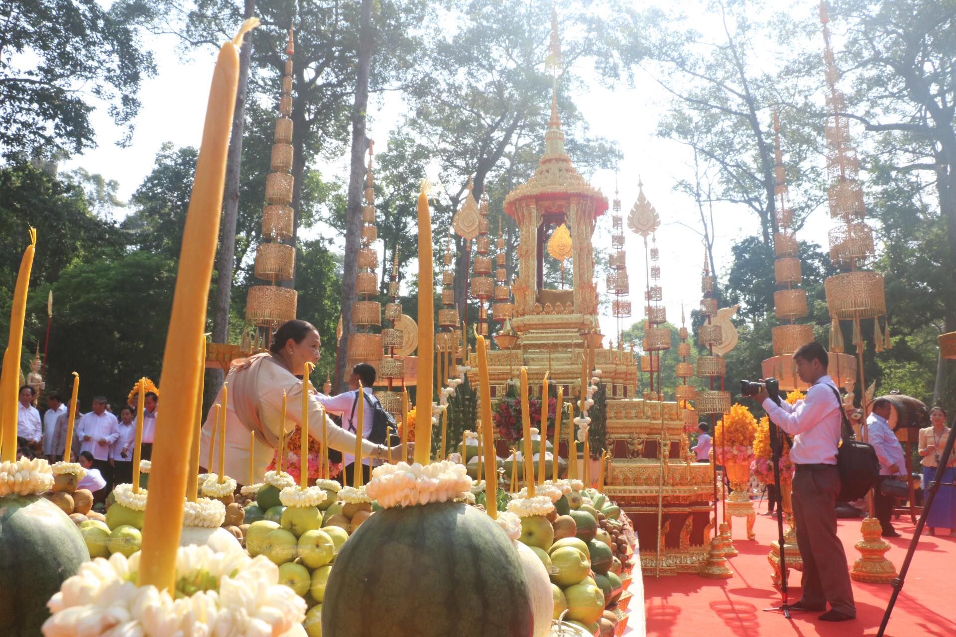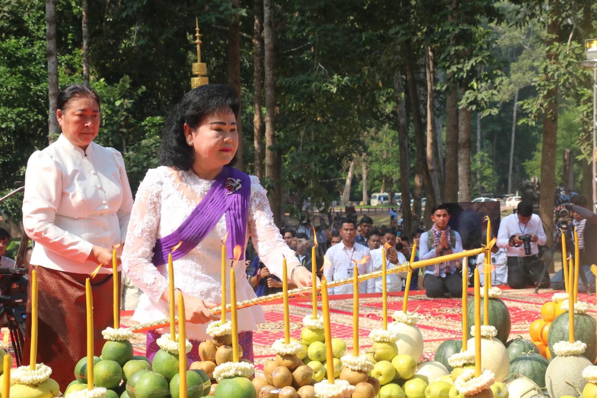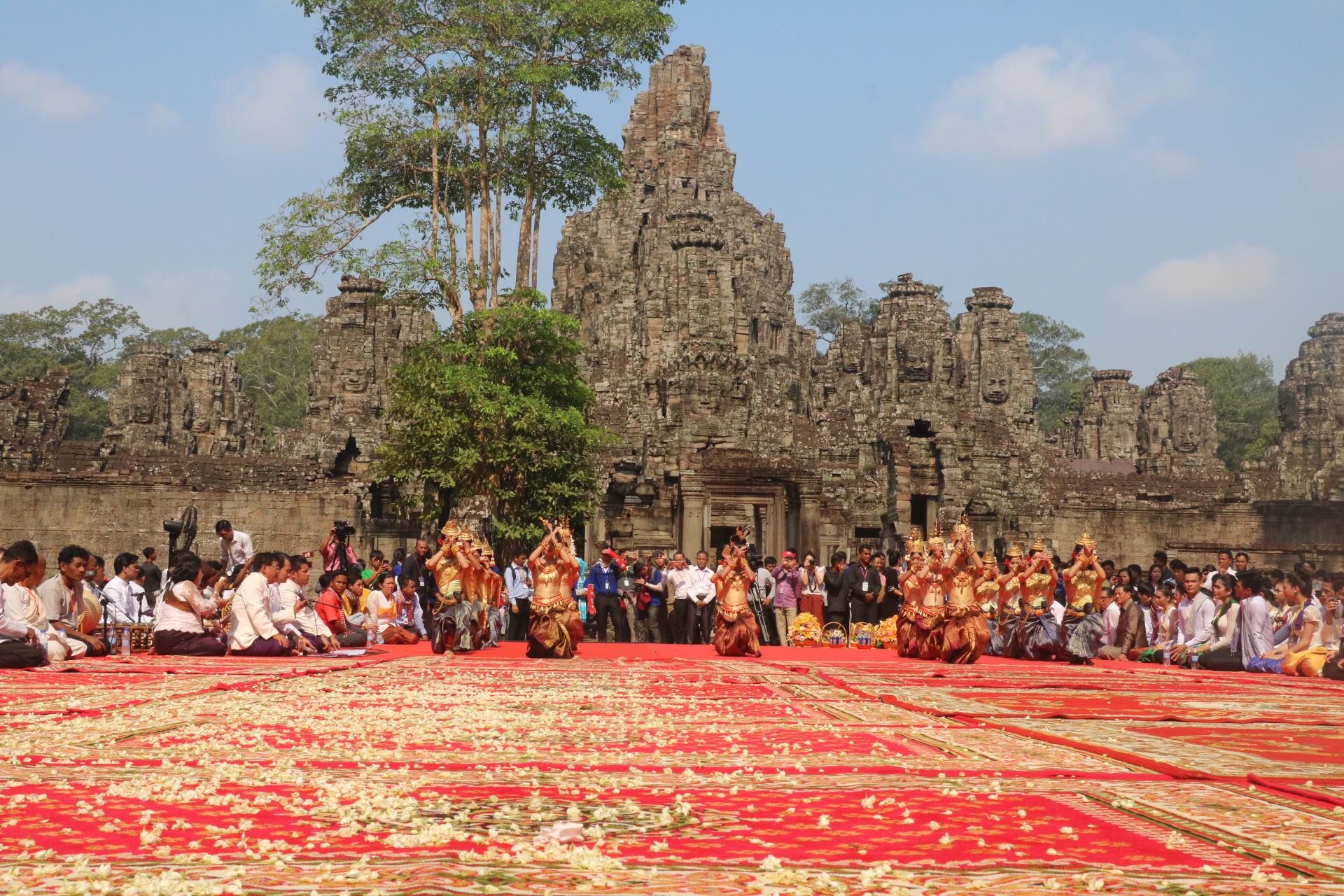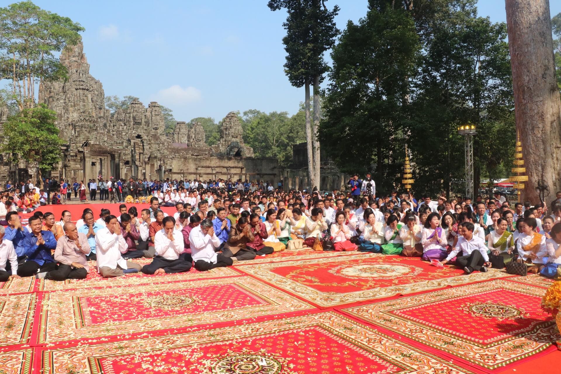 សម្តេចកិតិ្តព្រឹទ្ធបណ្ឌិត ប៊ុន រ៉ានី ហ៊ុនសែន ព្រះសង្ឃ មន្ត្រីនៃរាជរដ្ឋាភិបាល សមាជិកសមាជិកាសហភាពសហព័ន្ធយុវជនកម្ពុជា ប្រជាពលរដ្ឋ បាននិមន្ត និងអញ្ជើញចូលរួមក្នុងពិធីទទួល និងអំណរសាទរទេវតាឆ្នាំថ្មី ឆ្នាំច សំរឹទ្ធស័ក ព.ស២៥៦២ ព្រះនាម មហោទរាទេវី នៅមុខប្រាសាទបាយ័ន ខេត្តសៀមរាប។